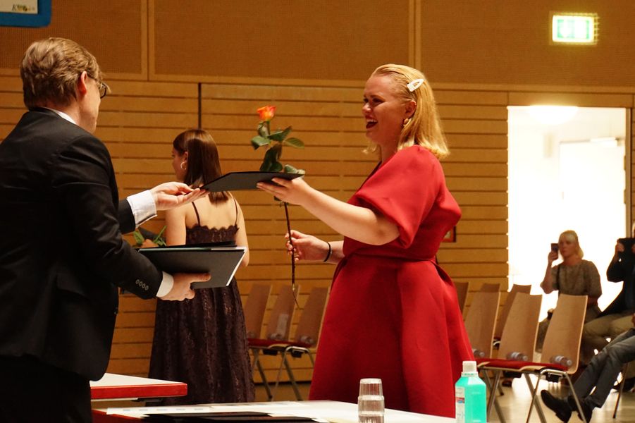 Die Vorträge von Leon Beyer, Elena Ordukhani und Lea Rürup – Leitung Clemens Bergemann – sorgten für einen würdevollen musikalischen Rahmen, der die Reden und Beiträge der Schulleitung, der Tutor*innen und der Schüler*innen abwechslungsreich umschloss.