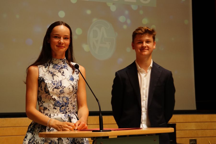 Eröffnet wurde die Veranstaltung durch unseren Oberstufenkoordinator Gerd Püttjer, der dieses Jahr in seinen verdienten Ruhestand wechselt und seinen letzten Abiturjahrgang verabschiedete. Er verwies auf die guten Leistungen der Schüler*innen und gratulierte allen Beteiligten herzlich zum bestandenen Abitur. Unser Schulleiter Florian Frankenfeld nahm in seiner Rede Bezug zu einer Tierfabel des altgriechischen Fabeldichters Äsop und zeigte den Schüler*innen Perspektiven für ihren zukünftigen Lebensweg auf.
