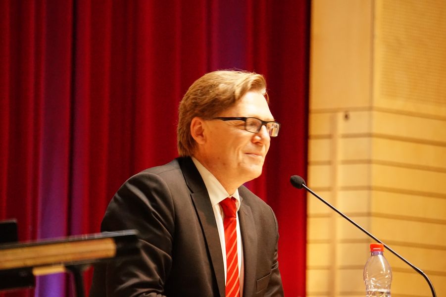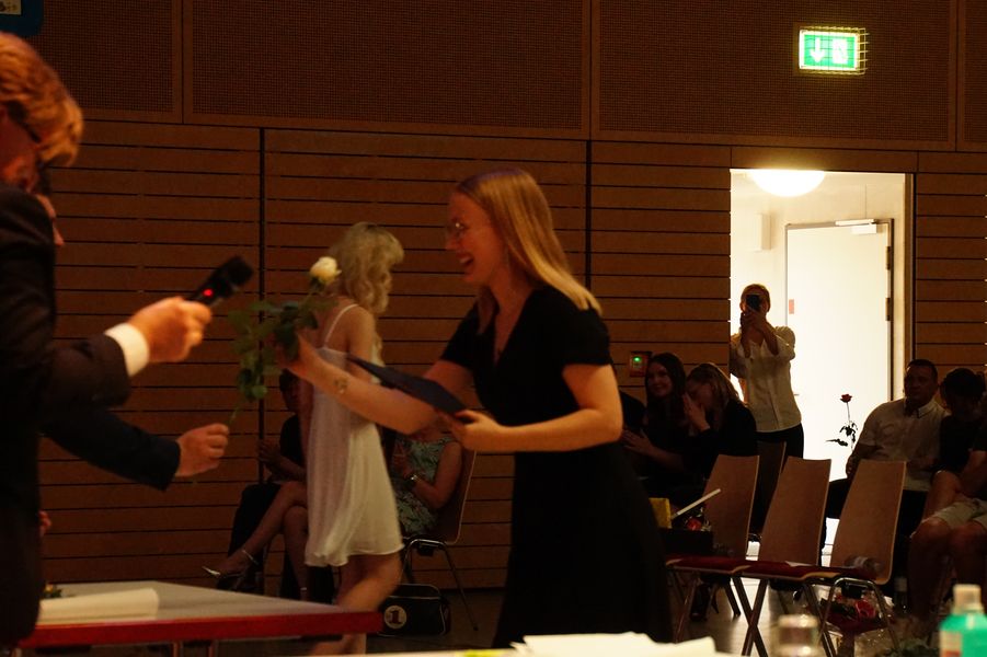 Eröffnet wurde die Veranstaltung durch unseren Oberstufenkoordinator Gerd Püttjer, der dieses Jahr in seinen verdienten Ruhestand wechselt und seinen letzten Abiturjahrgang verabschiedete. Er verwies auf die guten Leistungen der Schüler*innen und gratulierte allen Beteiligten herzlich zum bestandenen Abitur. Unser Schulleiter Florian Frankenfeld nahm in seiner Rede Bezug zu einer Tierfabel des altgriechischen Fabeldichters Äsop und zeigte den Schüler*innen Perspektiven für ihren zukünftigen Lebensweg auf.