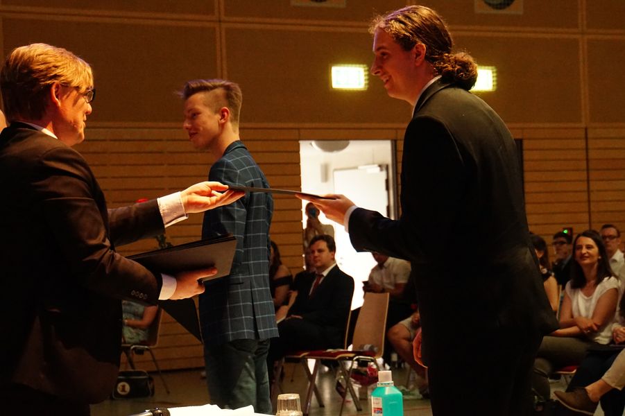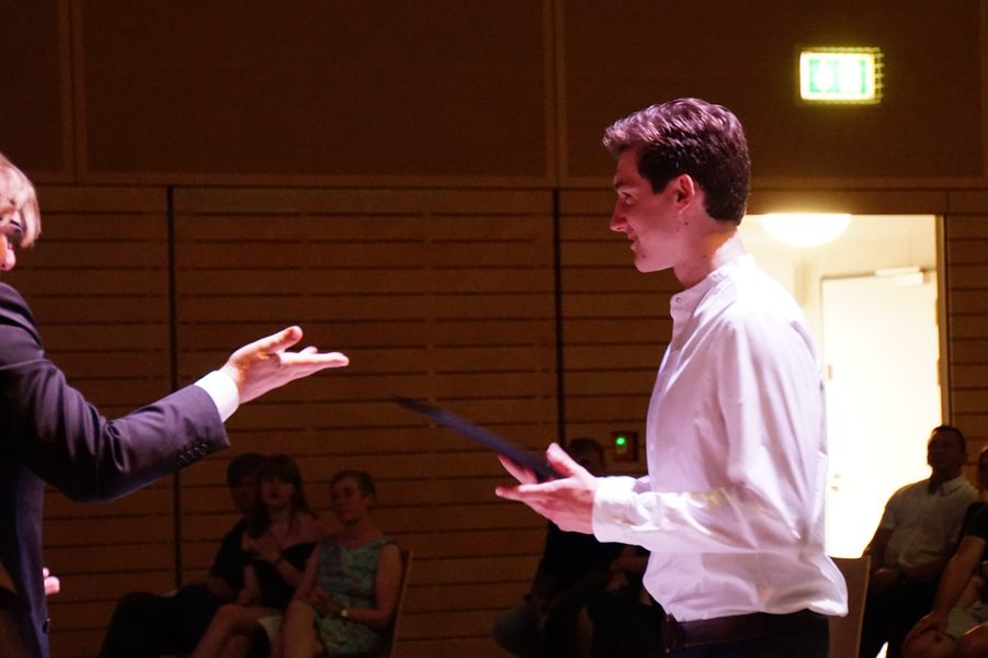Die Vorträge von Leon Beyer, Elena Ordukhani und Lea Rürup – Leitung Clemens Bergemann – sorgten für einen würdevollen musikalischen Rahmen, der die Reden und Beiträge der Schulleitung, der Tutor*innen und der Schüler*innen abwechslungsreich umschloss.