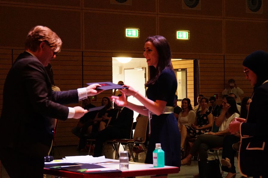 Beeindruckend, wie diese im Anschluss bei der Verleihung der Zeugnisse ihren Dank an die Schule zum Ausdruck brachten. Auch in dieser Hinsicht hat der Jahrgang überzeugt und sich warmherzig für die Unterstützung und Hilfe in den letzten Monaten bedankt. Die Tutor*innen Frau Fründt, Herr Wilson, Herr Köhler, Herr Kubisch und Herr Wagner gaben in warmen Worten diesen Dank zurück und teilten in einer gelungenen Zeremonie die Zeugnisse an die sichtlich gerührten Schüler*innen aus.