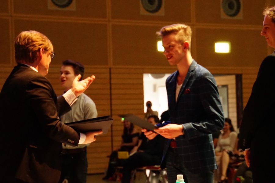 Die Vorträge von Leon Beyer, Elena Ordukhani und Lea Rürup – Leitung Clemens Bergemann – sorgten für einen würdevollen musikalischen Rahmen, der die Reden und Beiträge der Schulleitung, der Tutor*innen und der Schüler*innen abwechslungsreich umschloss.