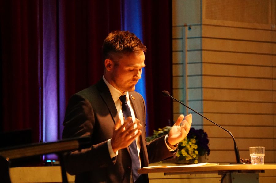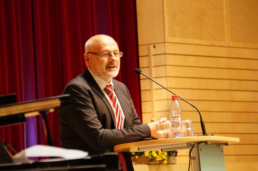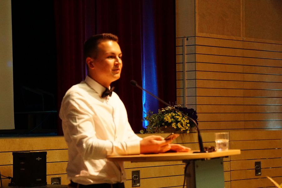 Eröffnet wurde die Veranstaltung durch unseren Oberstufenkoordinator Gerd Püttjer, der dieses Jahr in seinen verdienten Ruhestand wechselt und seinen letzten Abiturjahrgang verabschiedete. Er verwies auf die guten Leistungen der Schüler*innen und gratulierte allen Beteiligten herzlich zum bestandenen Abitur. Unser Schulleiter Florian Frankenfeld nahm in seiner Rede Bezug zu einer Tierfabel des altgriechischen Fabeldichters Äsop und zeigte den Schüler*innen Perspektiven für ihren zukünftigen Lebensweg auf.