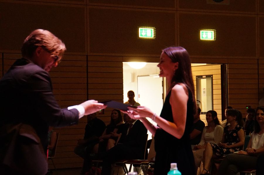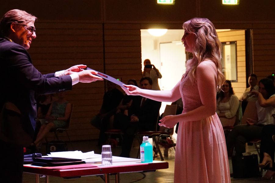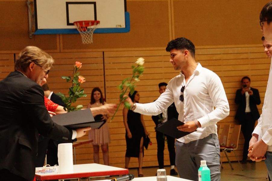 Beeindruckend, wie diese im Anschluss bei der Verleihung der Zeugnisse ihren Dank an die Schule zum Ausdruck brachten. Auch in dieser Hinsicht hat der Jahrgang überzeugt und sich warmherzig für die Unterstützung und Hilfe in den letzten Monaten bedankt. Die Tutor*innen Frau Fründt, Herr Wilson, Herr Köhler, Herr Kubisch und Herr Wagner gaben in warmen Worten diesen Dank zurück und teilten in einer gelungenen Zeremonie die Zeugnisse an die sichtlich gerührten Schüler*innen aus.