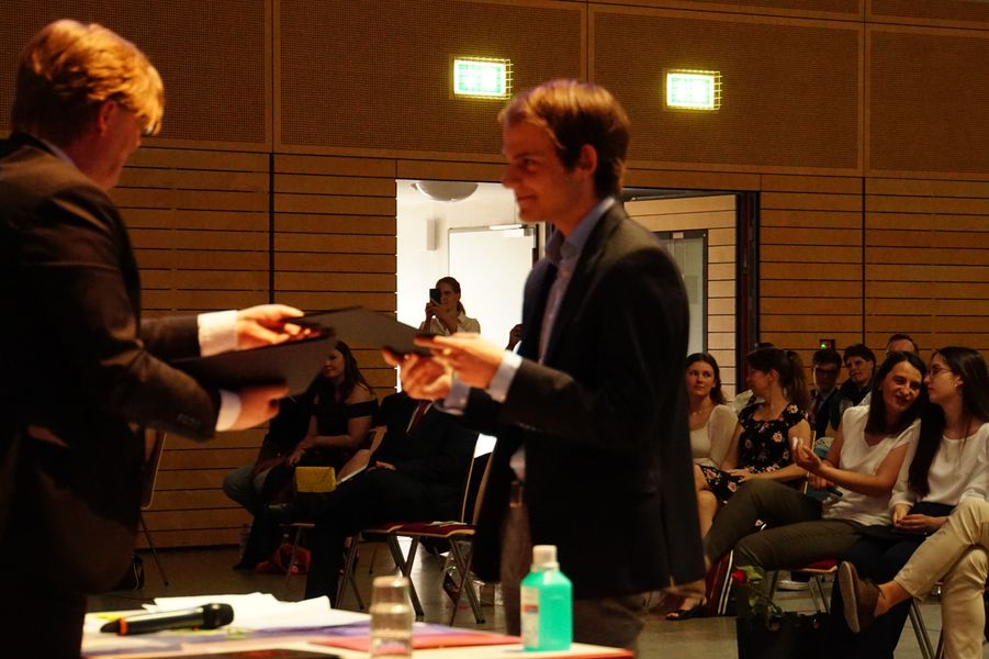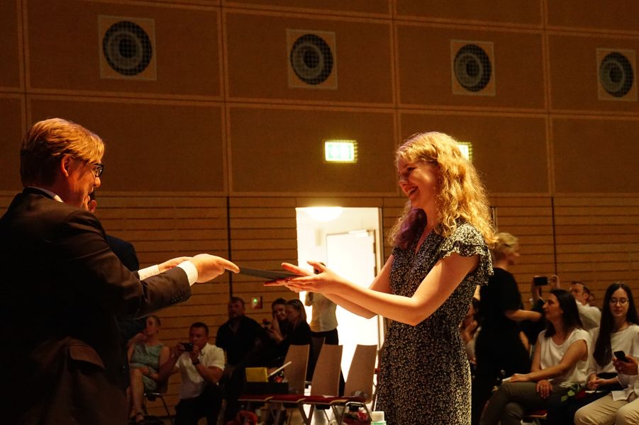 Die Vorträge von Leon Beyer, Elena Ordukhani und Lea Rürup – Leitung Clemens Bergemann – sorgten für einen würdevollen musikalischen Rahmen, der die Reden und Beiträge der Schulleitung, der Tutor*innen und der Schüler*innen abwechslungsreich umschloss.