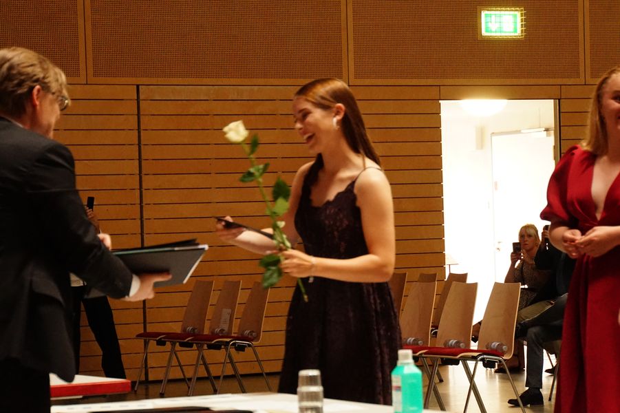 Die Vorträge von Leon Beyer, Elena Ordukhani und Lea Rürup – Leitung Clemens Bergemann – sorgten für einen würdevollen musikalischen Rahmen, der die Reden und Beiträge der Schulleitung, der Tutor*innen und der Schüler*innen abwechslungsreich umschloss.