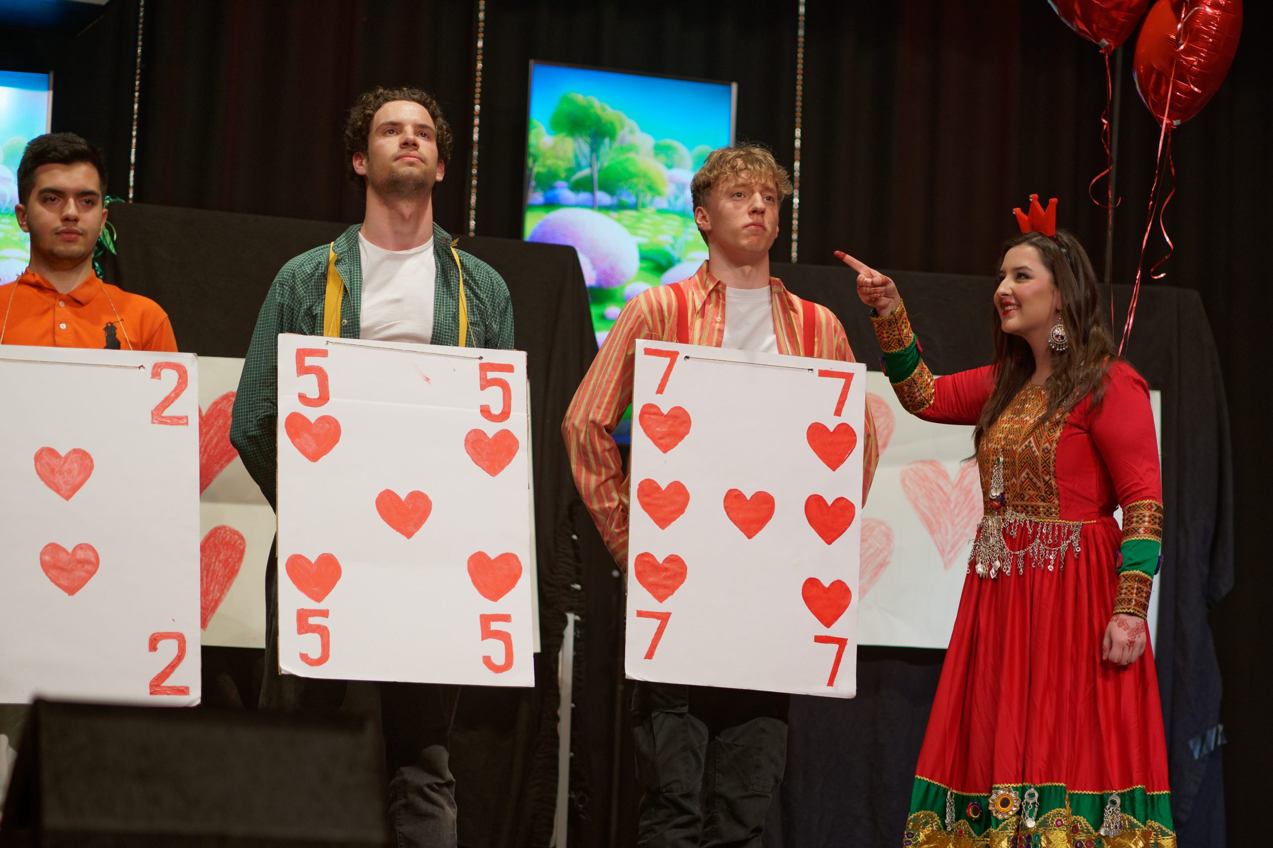 Wonderful acting, fine English, lots of creative ideas and – last but not least – a splendid selection of mad hats. Ms Wiesner’s Internationality Drama Course has provided everything for a delightful evening. So follow Alice on her journey through Wonderland and enjoy the evening.