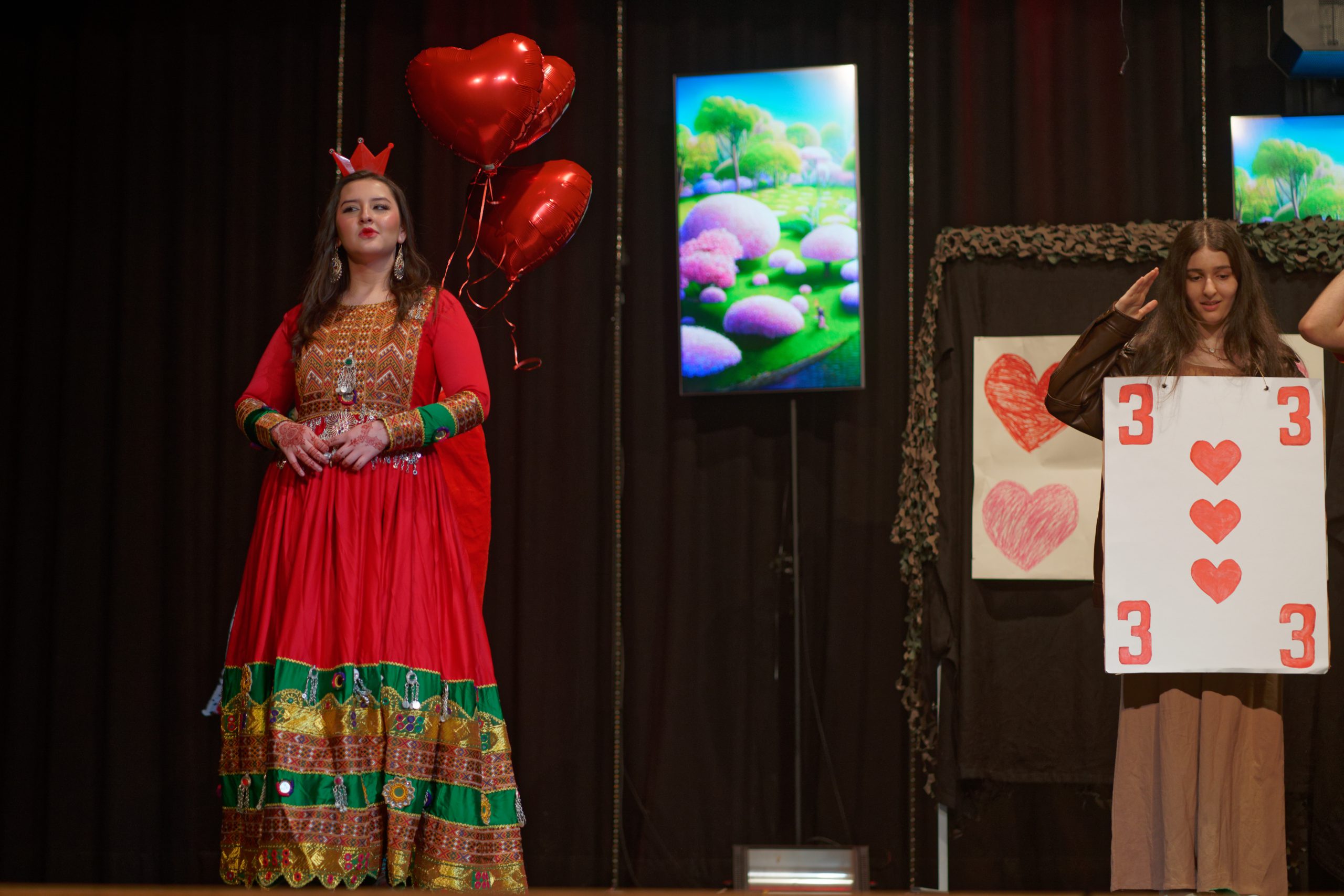 Wonderful acting, fine English, lots of creative ideas and – last but not least – a splendid selection of mad hats. Ms Wiesner’s Internationality Drama Course has provided everything for a delightful evening. So follow Alice on her journey through Wonderland and enjoy the evening.