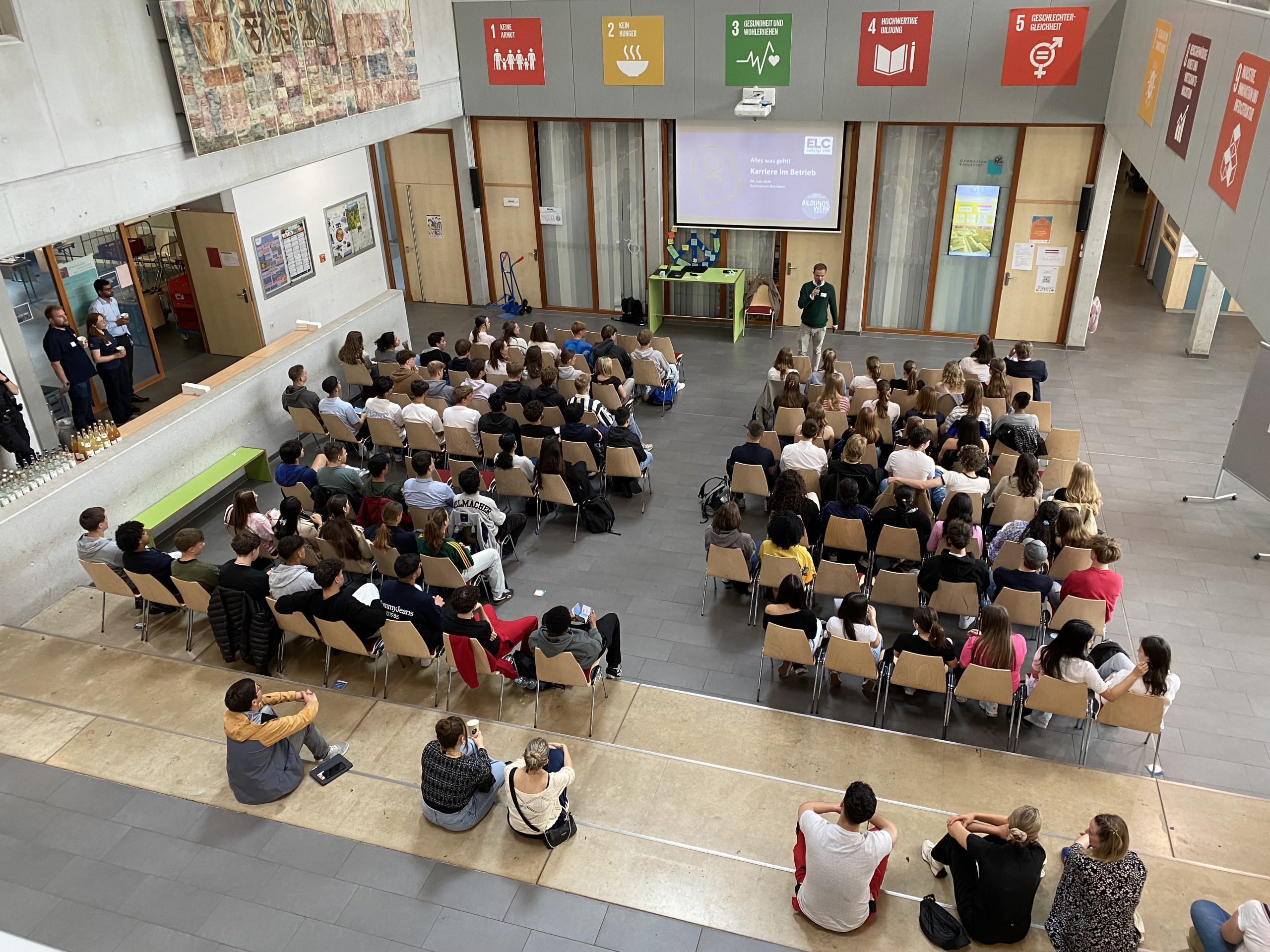 Am 4. Juni 2025 fand am Gymnasium Rahlstedt zum zweiten Mal die Auftaktveranstaltung mit Berufsorientierungsmesse der dreiteiligen Veranstaltungsreihe „Alles was geht! Karriere im Betrieb!“ statt.