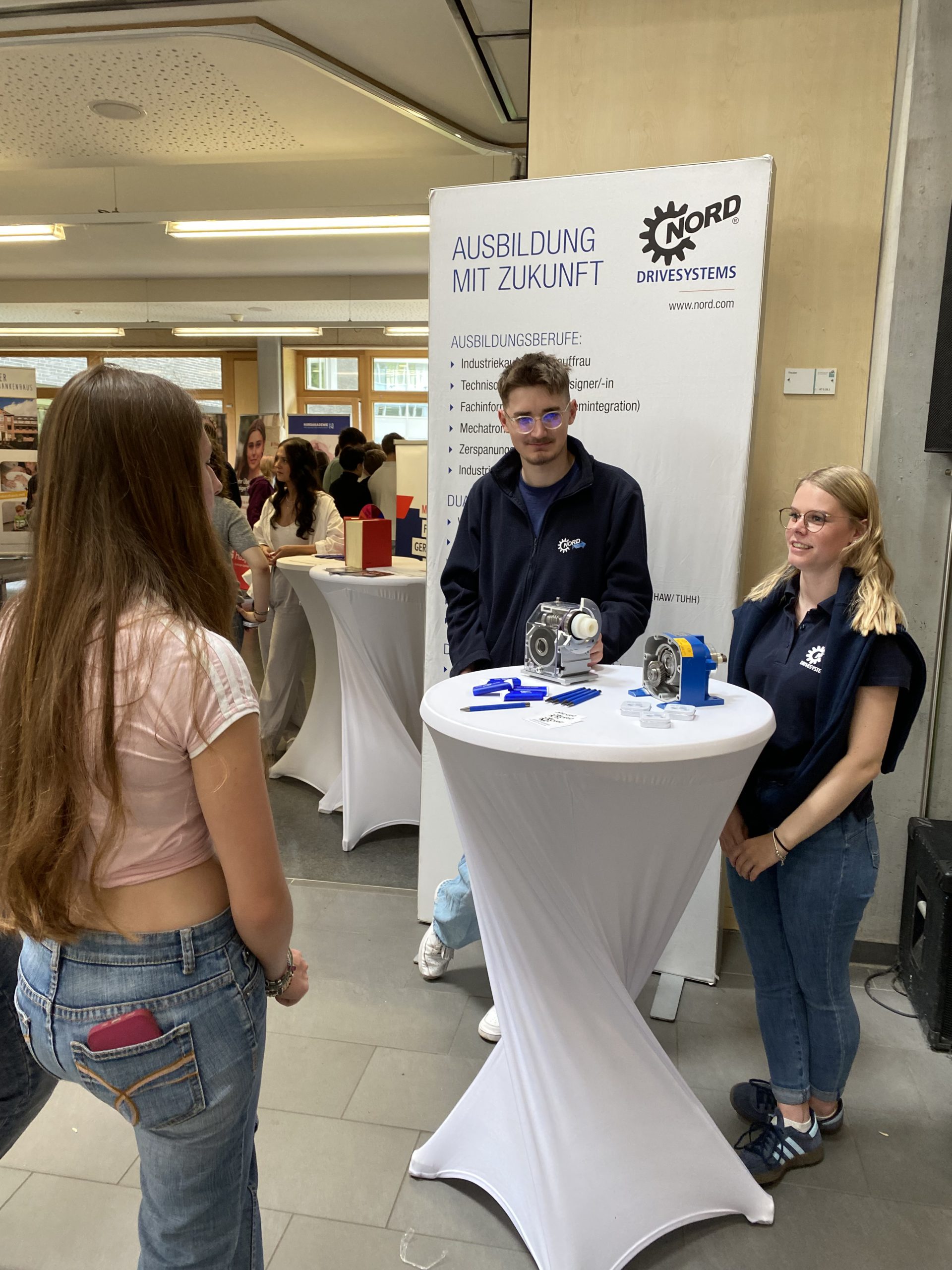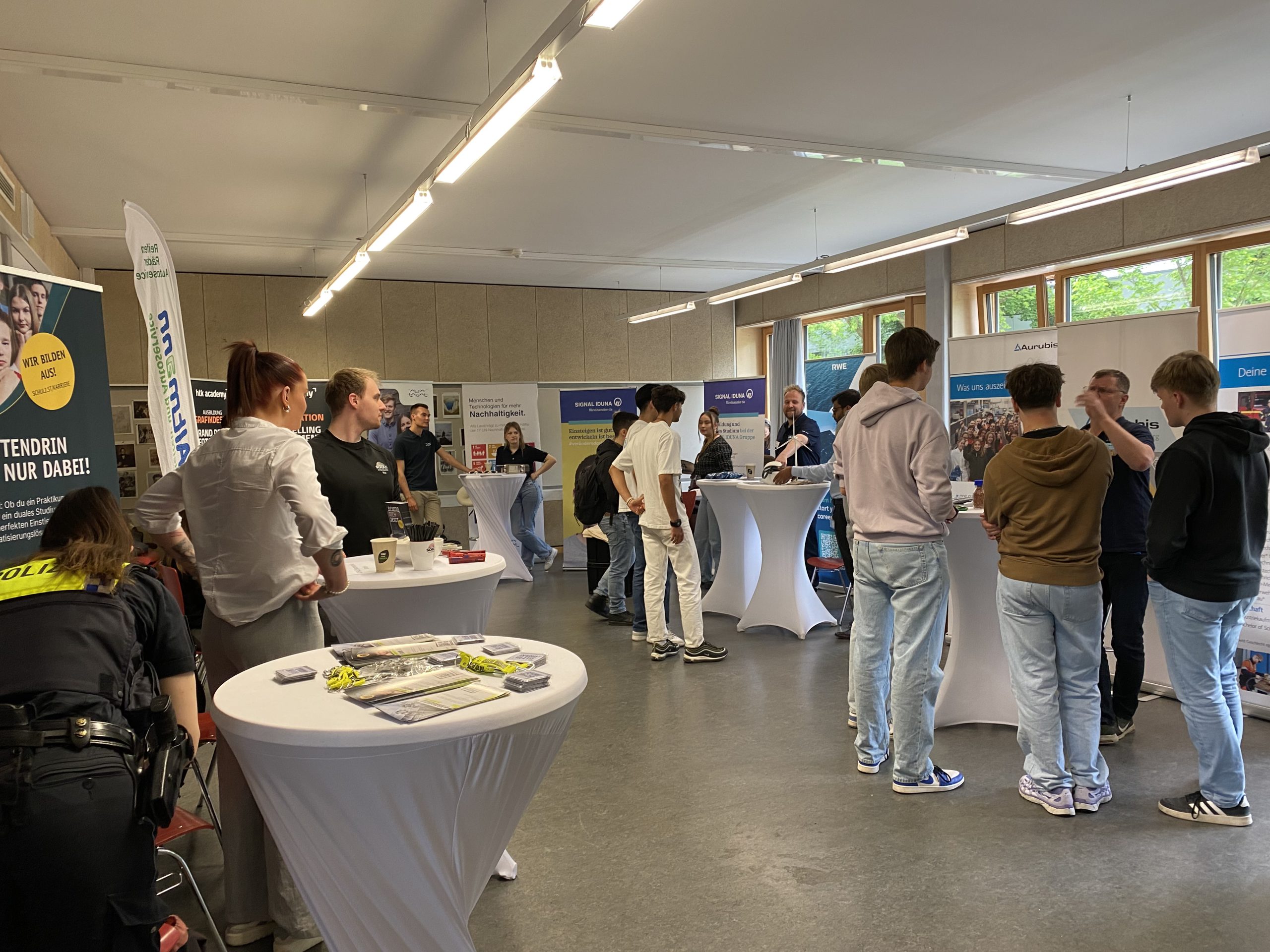 Von regionalen Handwerksbetrieben wie Peter Jensen und der Handelskammer über größere Industrieunternehmen wie Aurubis und RWE bis hin zu medizinischen Einrichtungen wie der Asklepios Klinik – die Vielfalt spiegelte ein breites Spektrum beruflicher Perspektiven wider. Besonders geschätzt wurden die persönlichen Gespräche an den Ständen und die praktischen Erfahrungen in den Workshops, bei denen die Jugendlichen individuelle Einblicke in verschiedene Berufe und Karrierewege erhielten.