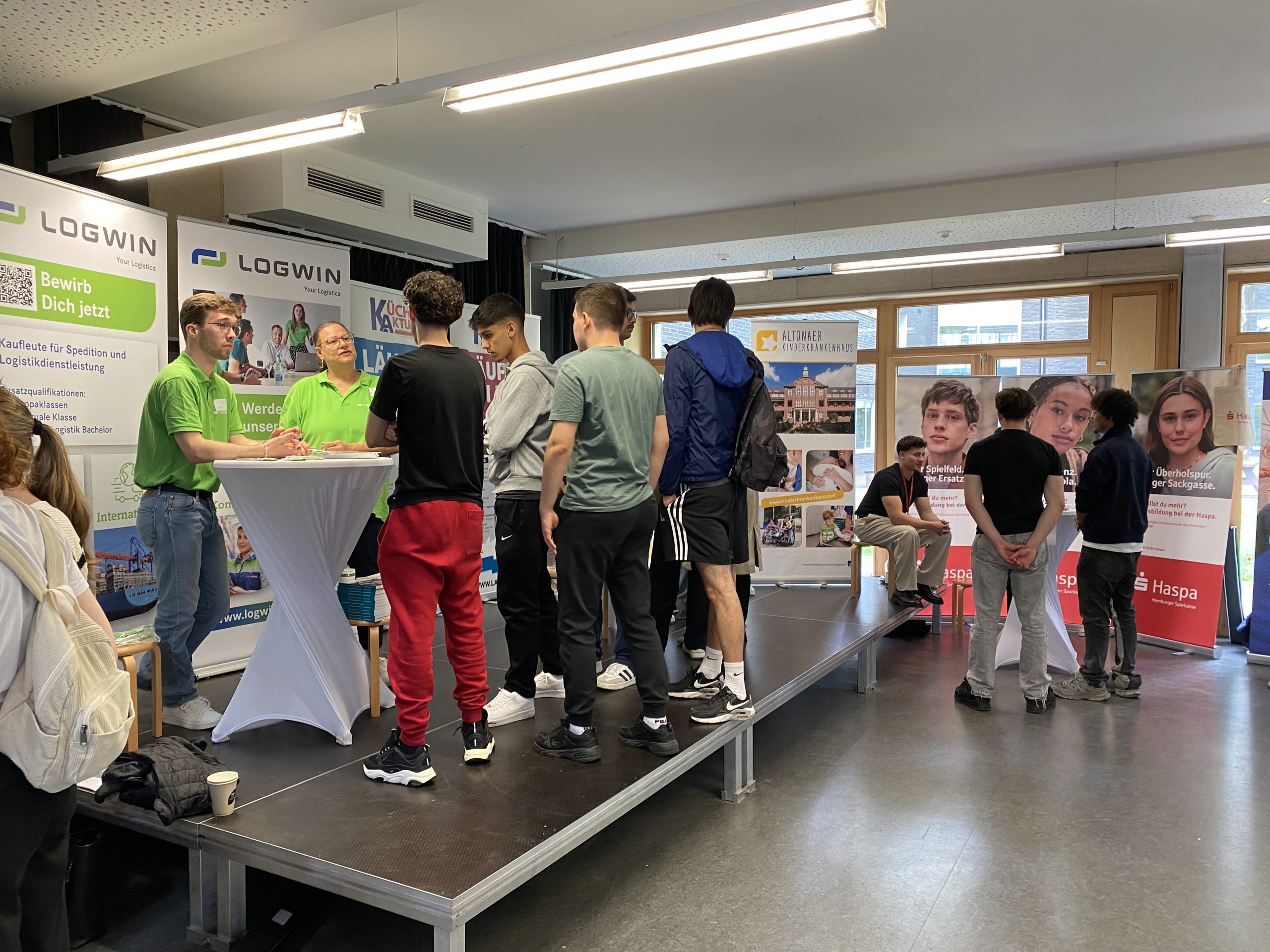 Von regionalen Handwerksbetrieben wie Peter Jensen und der Handelskammer über größere Industrieunternehmen wie Aurubis und RWE bis hin zu medizinischen Einrichtungen wie der Asklepios Klinik – die Vielfalt spiegelte ein breites Spektrum beruflicher Perspektiven wider. Besonders geschätzt wurden die persönlichen Gespräche an den Ständen und die praktischen Erfahrungen in den Workshops, bei denen die Jugendlichen individuelle Einblicke in verschiedene Berufe und Karrierewege erhielten.