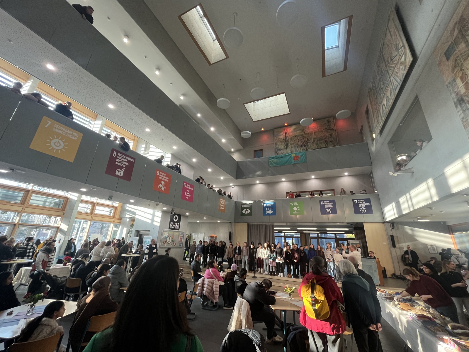 ステージでは、学校代表の発表で一日が始まり、合唱は「An guten Tagen」(歌唱: Johannes Oerding, 2019)で鳥肌が立つ瞬間を作り出しました – この温かな雰囲気にぴったりの曲でした。望む人には、合唱練習の舞台裏ものぞくことができました。