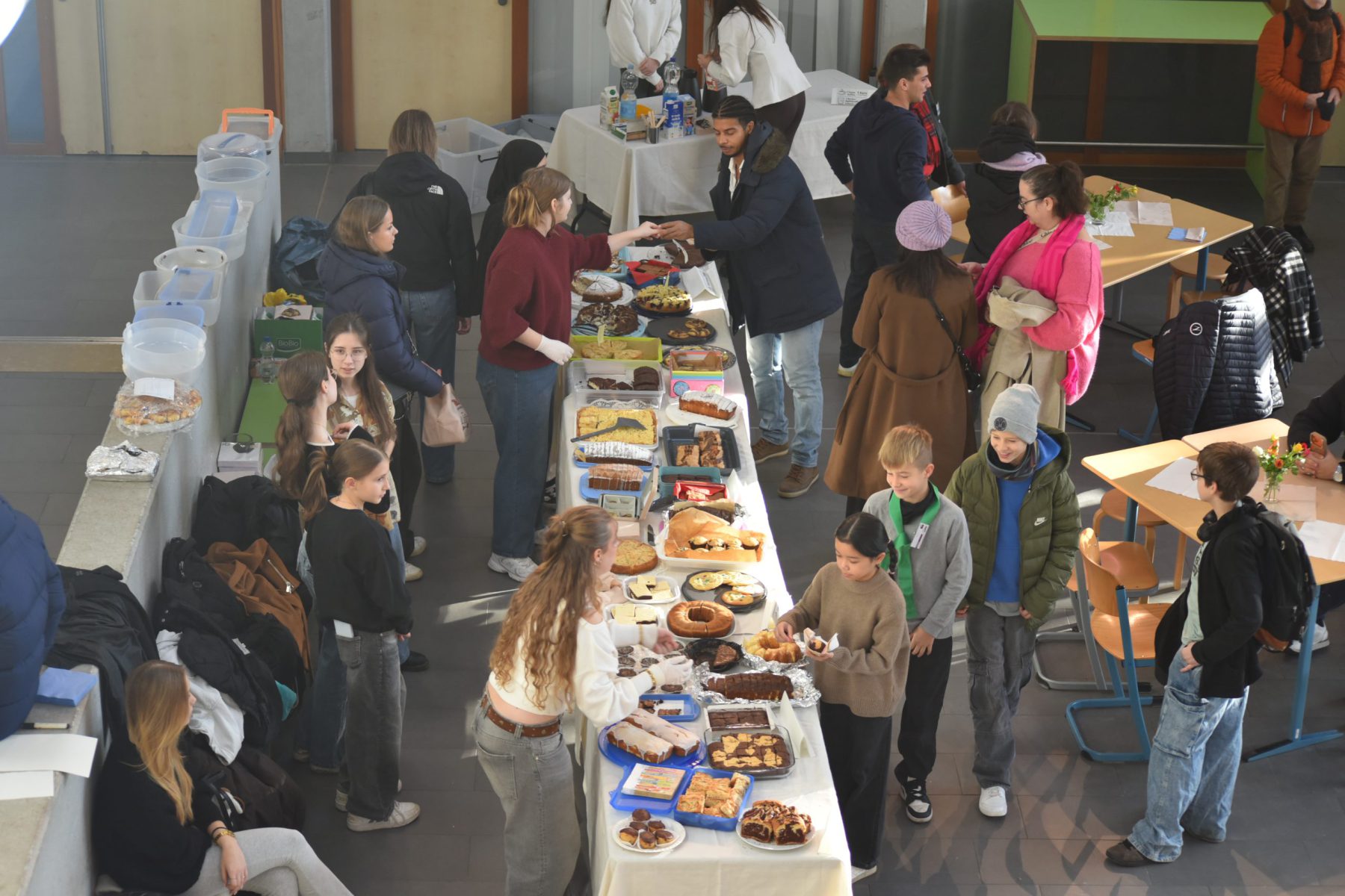 高年级为来宾提供了咖啡、果汁、自烘蛋糕和酥脆饼干,让大家感到宾至如归。用心布置的桌子邀请人们坐下、停留。