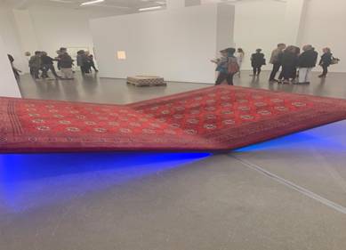 Besonders auffällig ist ein großer roter Teppich aus dem Orient, entworfen von der Gruppe Slave and Tatars aus dem Jahre 2019, welcher wie ein offenes Buch dargestellt worden und gleichzeitig eine Sitzmöglichkeit ist.
