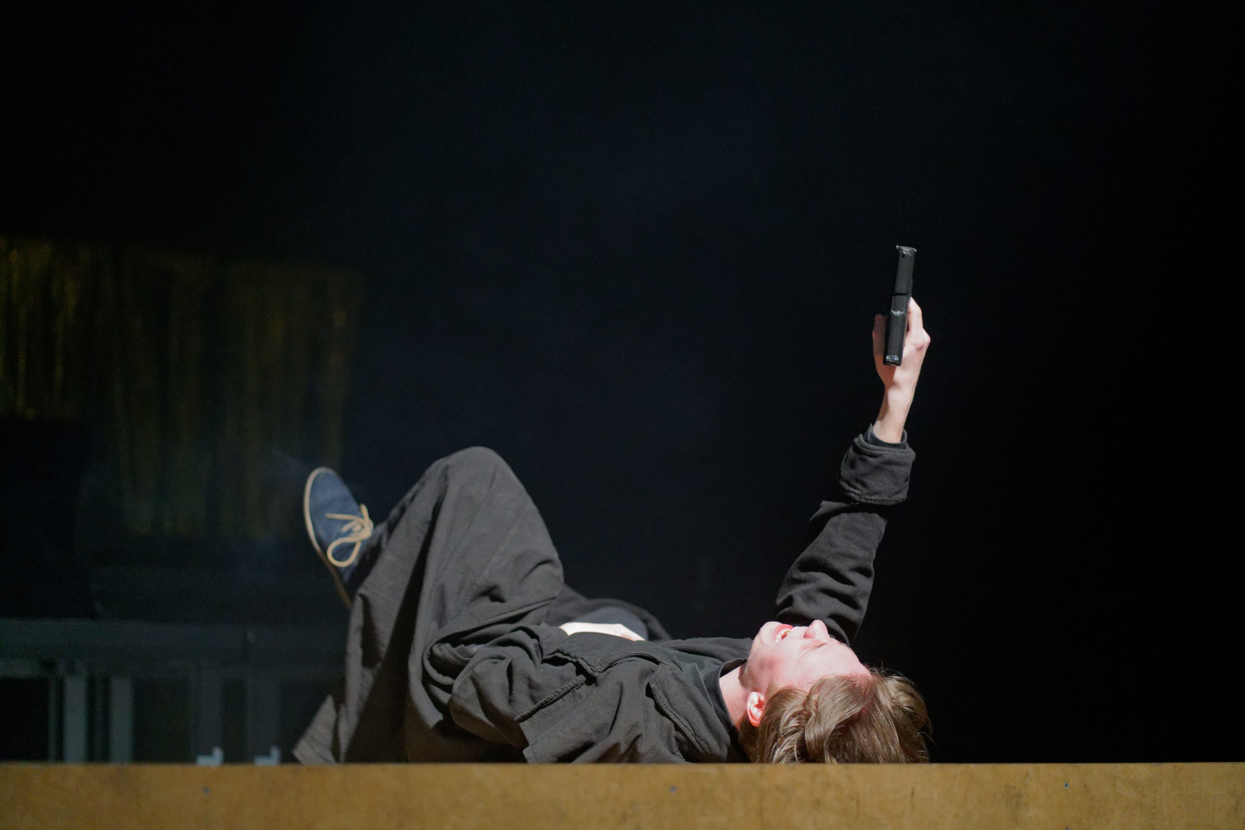 Hamlet scheint bereits zu Beginn des Stückes mit dem Leben abgeschlossen zu haben. Während hinter ihm goldener Lametta hängt und eine Hochzeit zu feiern ist, sitzt er, bleich und ganz in schwarz, abseits und hasst die Tatsache, dass seine Mutter, die Königin Dänemarks, kurz nach dem plötzlichen Tod seines Vaters einen neuen Mann hat: seinen Onkel. Aber dann erscheint ebendieser Vater ihm als Geist aus dem Jenseits und gibt ihm eine Mission und eine Waffe: Er soll Rache nehmen, denn sein Onkel ist der Vater-, der Brudermörder. Hamlet, nur unterstützt von seiner Freundin Horatia, hadert mit dieser Aufgabe, doch er täuscht Irrsinn vor, verprellt sogar seine geliebte Ophelia, deren greiser Vater Polonius sie nicht zu schützen vermag, und lässt schließlich seiner Mutter und Tante sowie seinem Onkel und Stiefvater den Mord in einem ,Stück im Stück‘ vorführen, um sie zu enttarnen. Obwohl er es trotzdem nicht über sich bringt, seinen Onkel Claudius beim Gebet zu töten, geschieht bald der nächste Mord …