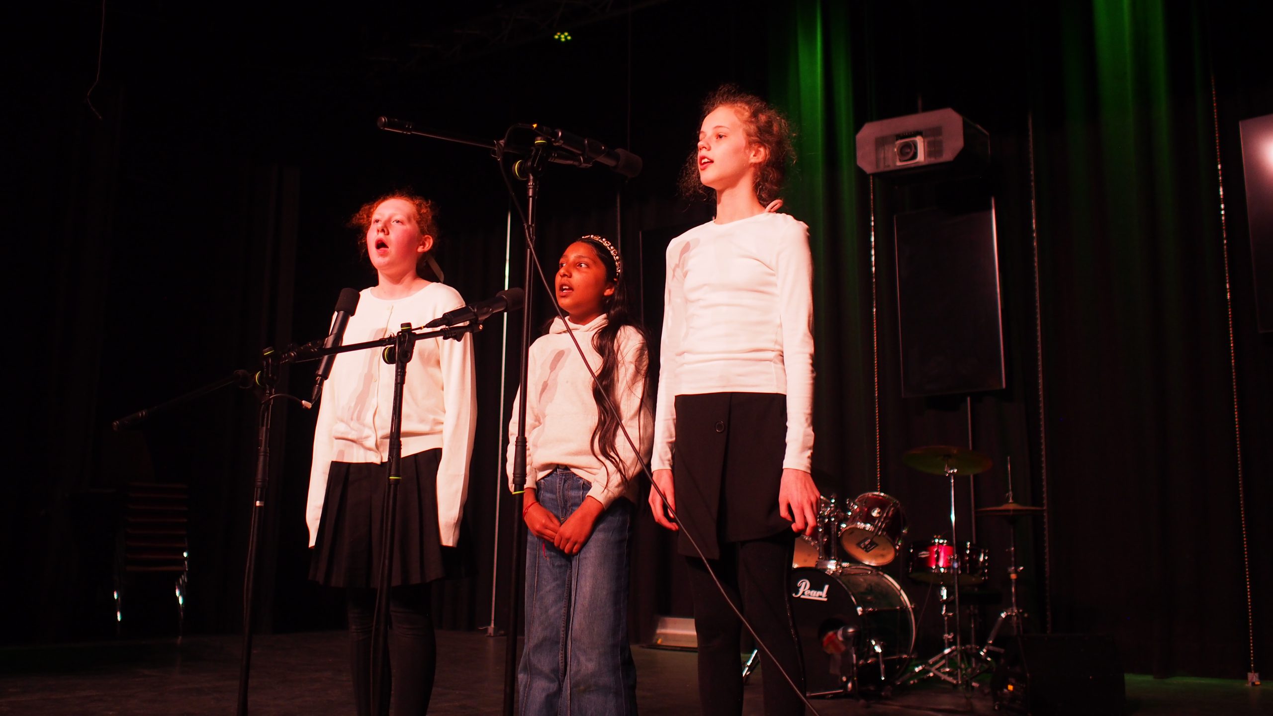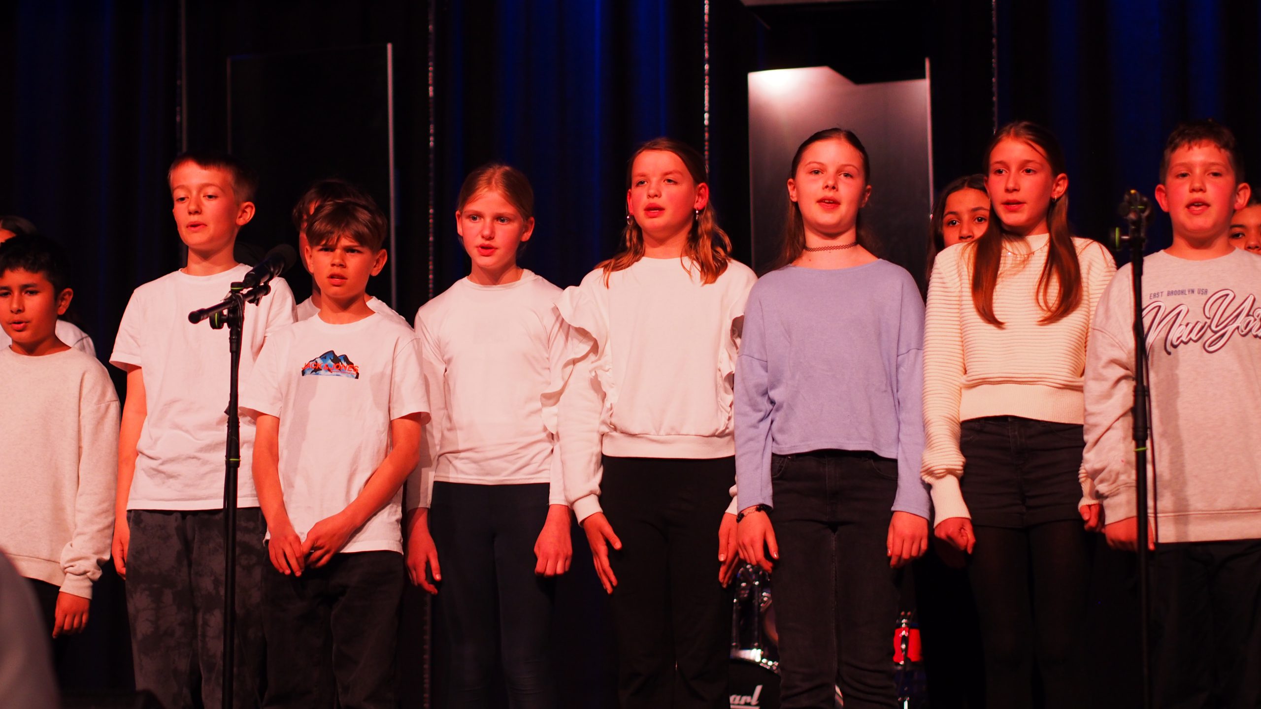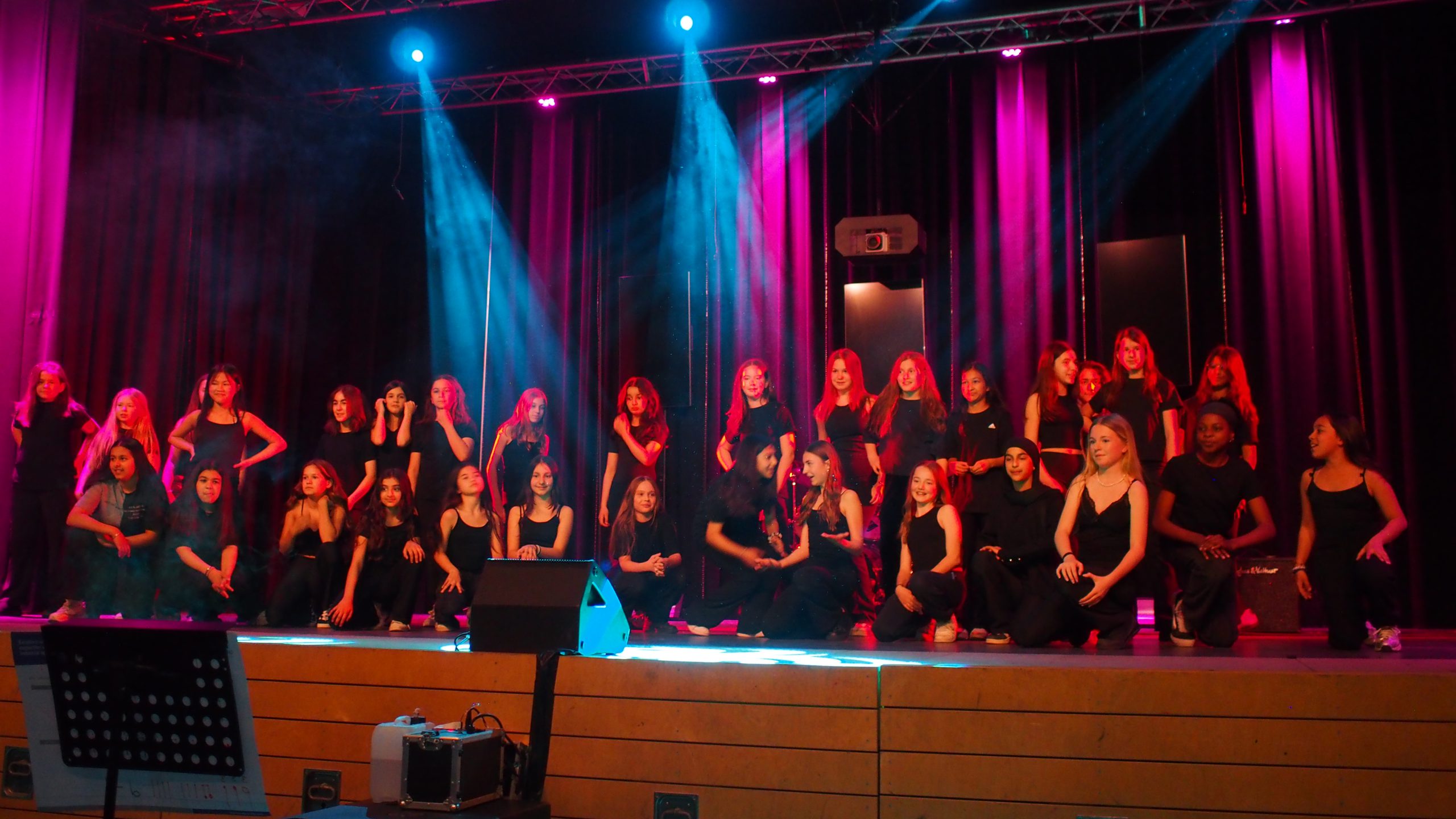 Unsere neue Kollegin Maja Kemper, die seit Februar bei uns Musik und Französisch unterrichtet, unterstützte bei Bedarf die einzelnen Ensembles gesanglich oder instrumental. Die Tanz-AG unter der Leitung von Kaila Bulanik führte uns beschwingt in die Pause, unterstützt durch besondere Lichteffekte des Technikteams. Im zweiten Teil überzeugte die Mittelstufenband von Herrn Lahann wie immer durch virtuoses Spiel und zauberhaften Gesang. Den festlichen Abschluss gestaltete der Oberstufenchor von Herrn Krösser.