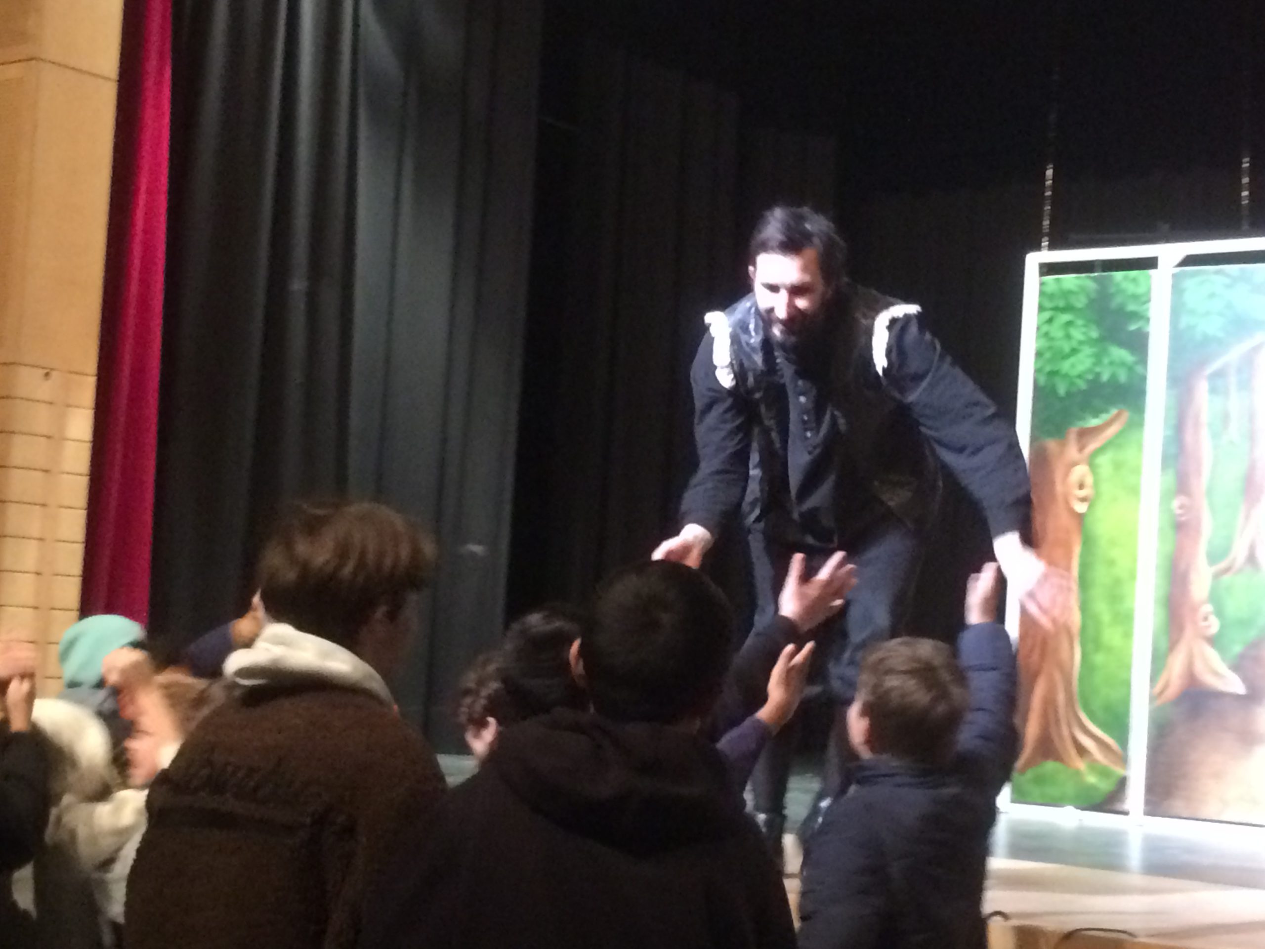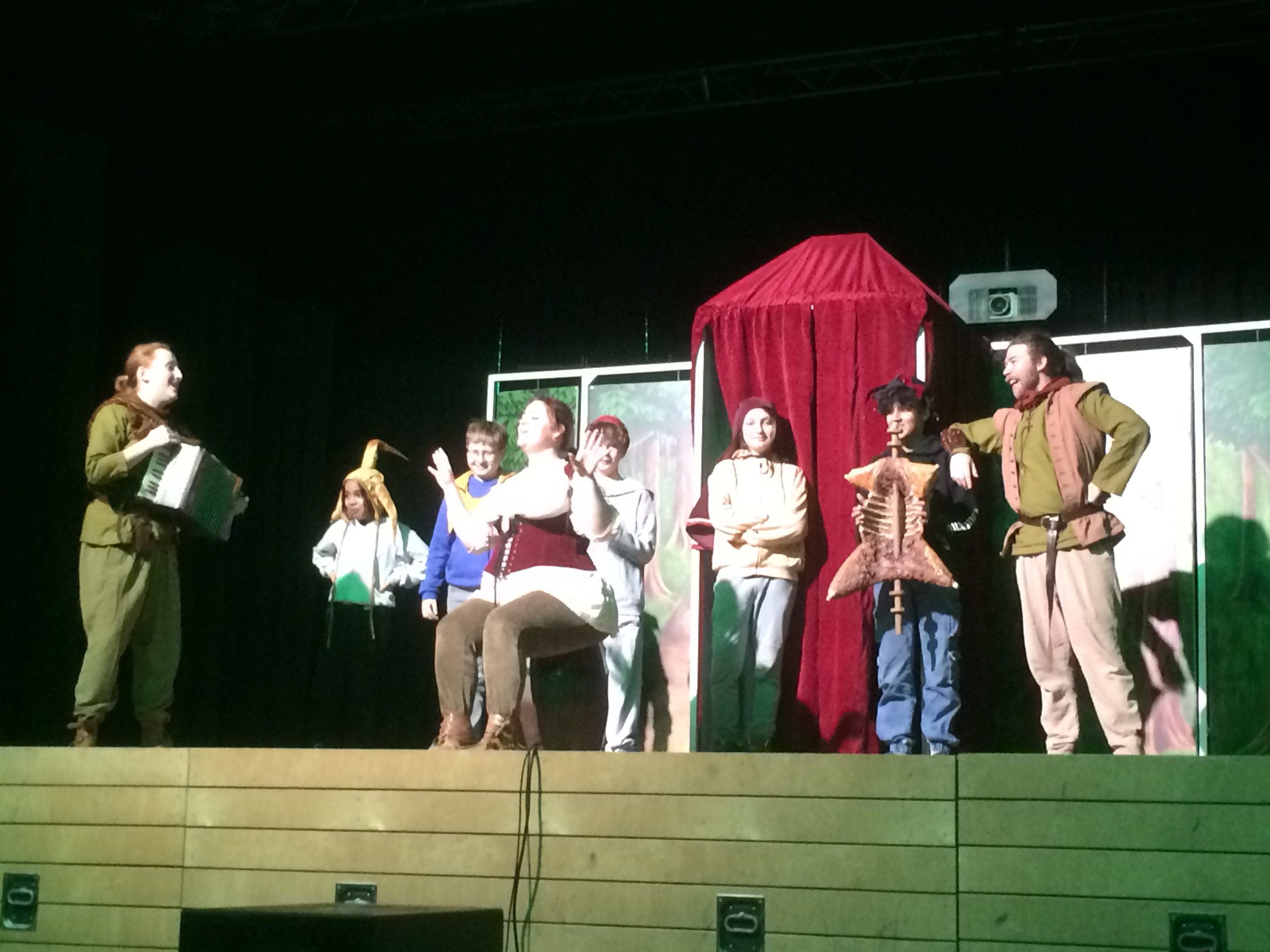It was the most fun for our fifth- and sixth-graders to shout down the Sheriff’s boasting and to follow the characters into Sherwood Forest with its folk music and its strange creatures (the squirrel). Some pupils even joined the actors on stage and performed really well!
