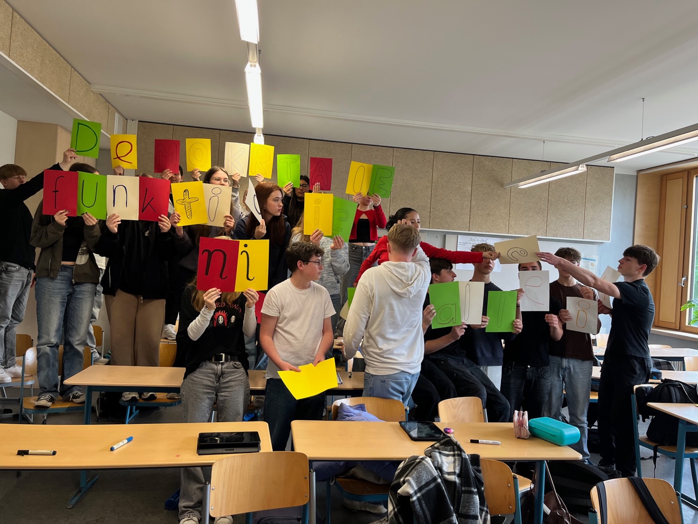 Am 10.6.2025 hat die Klasse 10c an der bundesweiten Aktion #IchStehAuf – Schulen für Demokratie und Vielfalt teilgenommen. Mit dem selbstgewählten Slogan „Demokratie funktioniert nicht alleine“ setzten die Schülerinnen und Schüler ein deutliches Zeichen für Zusammenhalt, Mitbestimmung und gegenseitigen Respekt.