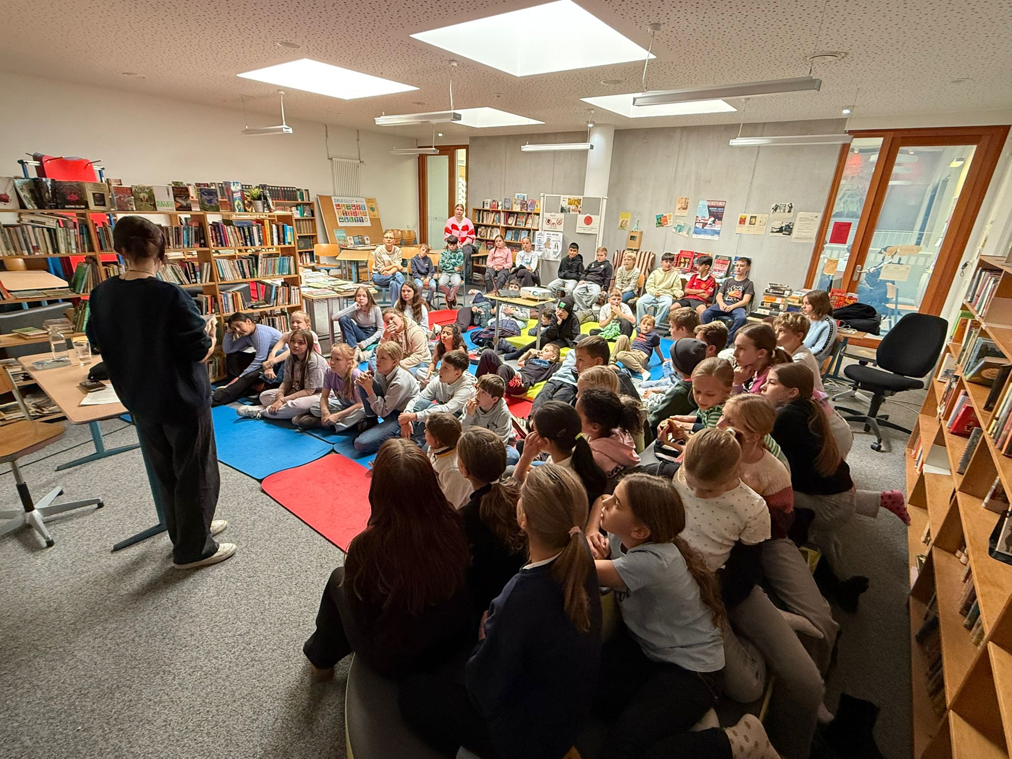 Am Montag, den 13. Oktober 2025, besuchten vier fünfte Klassen eine Lesung der Autorin Theresa Bell in der Bibliothek unserer Schule. In gemütlicher Atmosphäre las die Autorin aus ihren beiden Romanen „Sepia und das Erwachen der Tintenmagie“ und „Sepia und die Verschwörung von Flohall“. Dabei fesselte sie uns mit der Geschichte rund um das zwölfjährige Waisenkind Sepia, das nach einem mysteriösen Brief von Silbersilbe, einem der drei großen Meister, nach Flohall reist. Flohall ist eine berühmte Hafenstadt, in der Tinte und Bücher wertvoller sind als Gold. Bei Meister Silbersilbe soll Sepia das Handwerk des Buchdrucks erlernen. Doch warum gerade sie – ein tollpatschiges Mädchen, das ständig Tintenflecke an den Fingern hat – auserwählt wurde, bleibt Sepia ein Rätsel. Als ihr immer wieder mysteriöse Dinge passieren, versucht sie, diesen mithilfe ihrer zwei neuen Freunde Niki und Sanzio auf den Grund zu gehen.