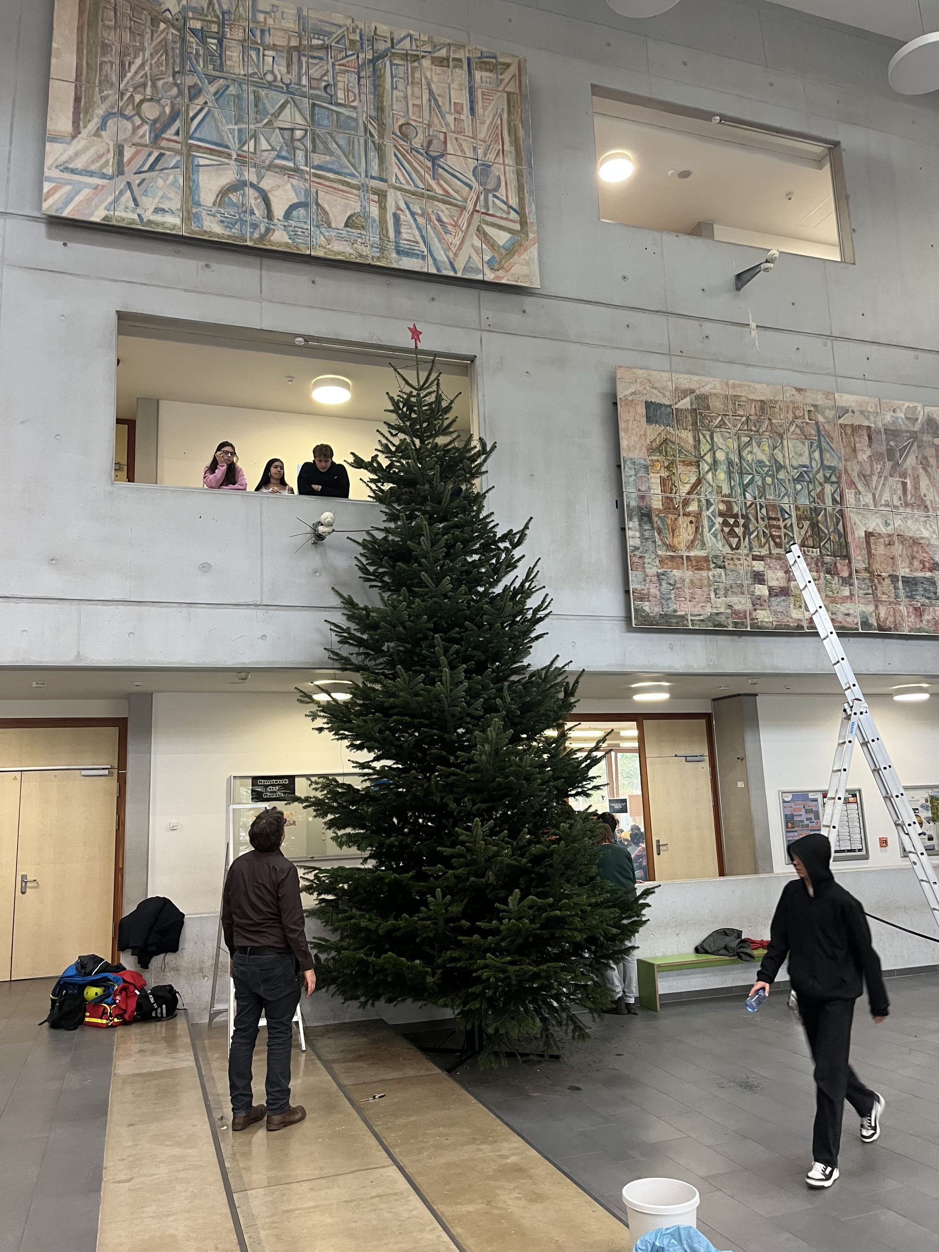 Seit dieser Woche strahlt im Atrium des GyRas unser großer Weihnachtsbaum. Mit seinen stolzen sechs bis sieben Metern Höhe sowie mit seinem warmen Lichterglanz ist er unübersehbar.