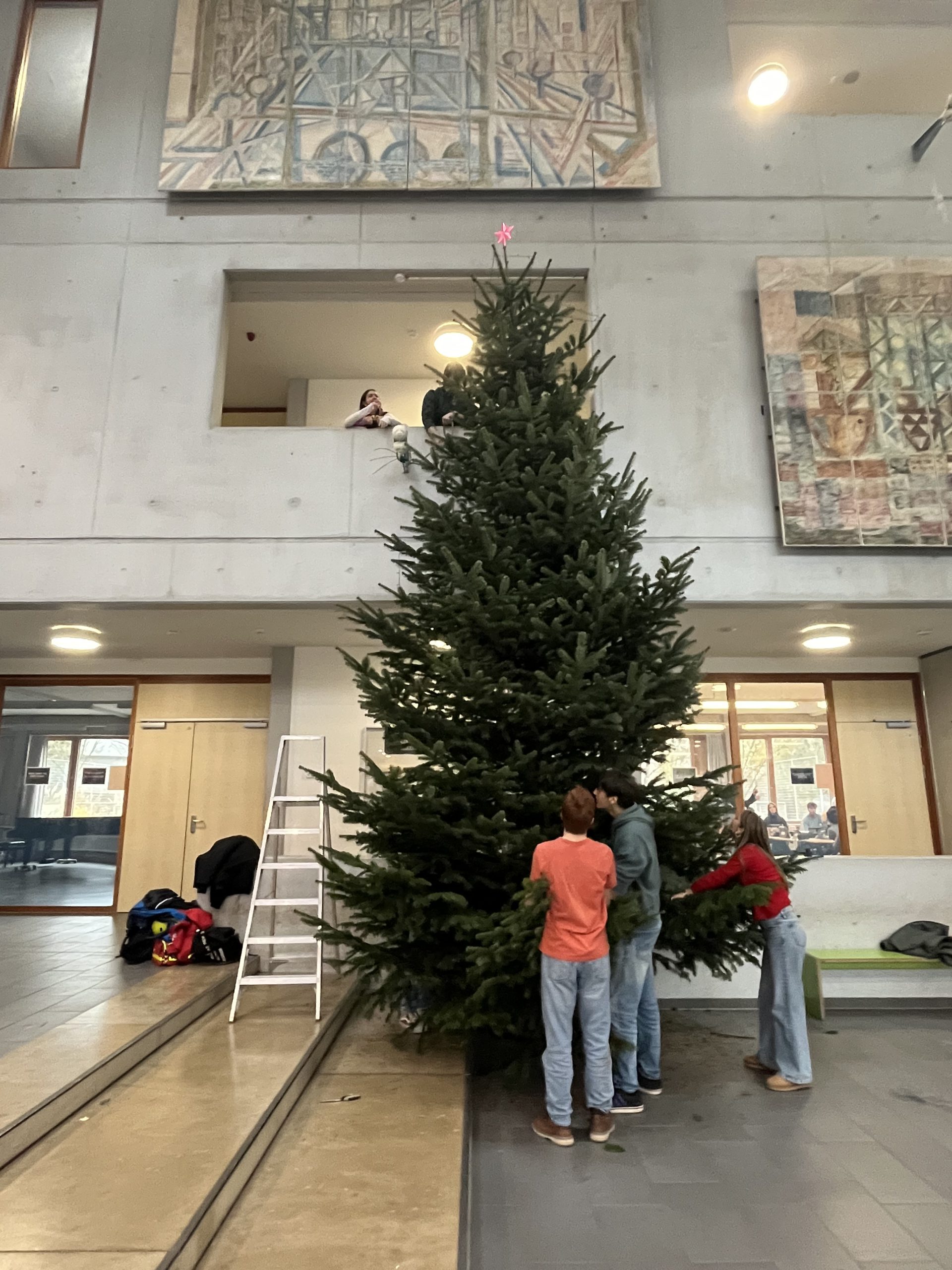 Seit dieser Woche strahlt im Atrium des GyRas unser großer Weihnachtsbaum. Mit seinen stolzen sechs bis sieben Metern Höhe sowie mit seinem warmen Lichterglanz ist er unübersehbar.