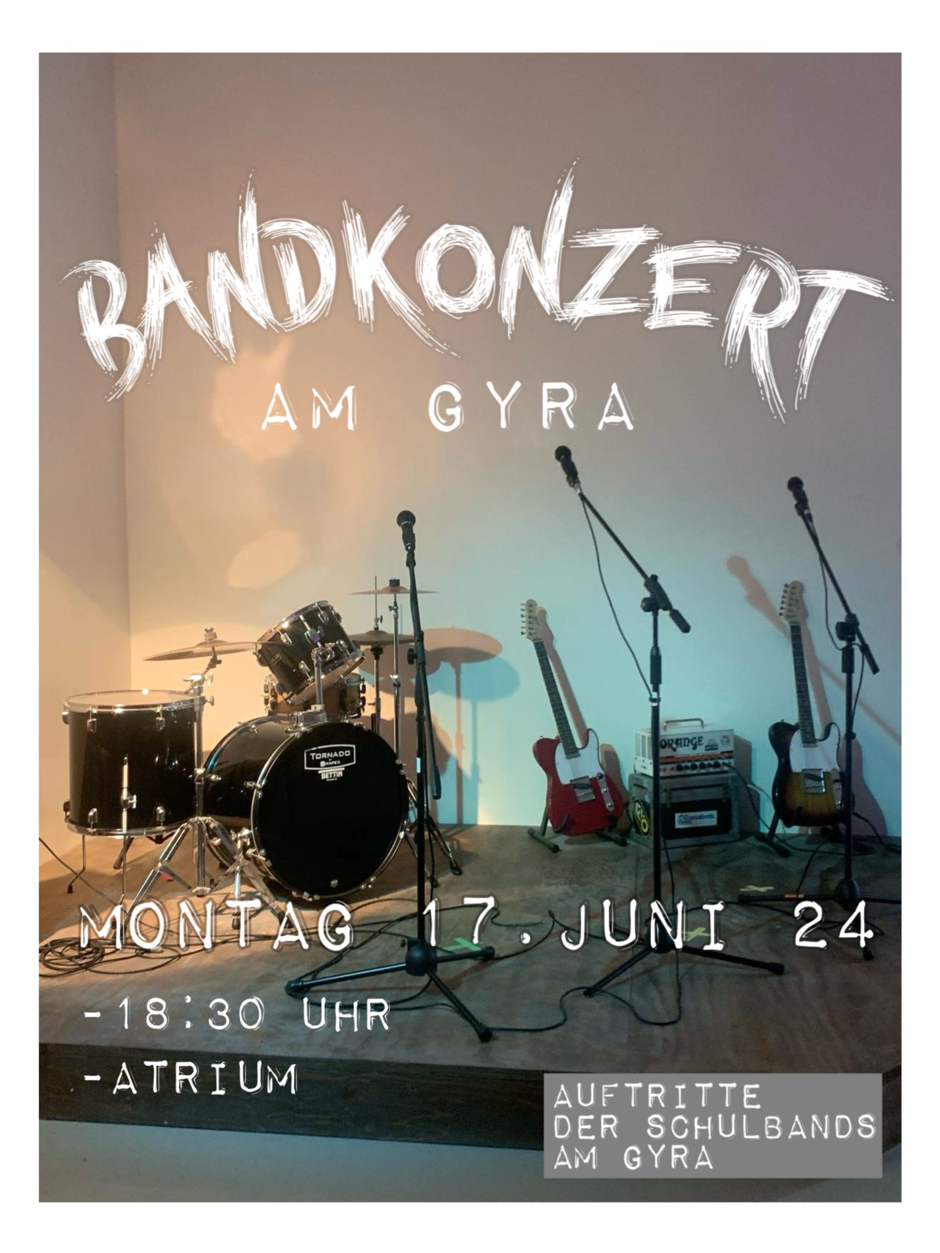 Die Bands des GyRa laden Sie und Euch herzlich zum Bandkonzert am kommenden Montag um 18.30 Uhr ins Atrium ein und stellen sich hier kurz vor: