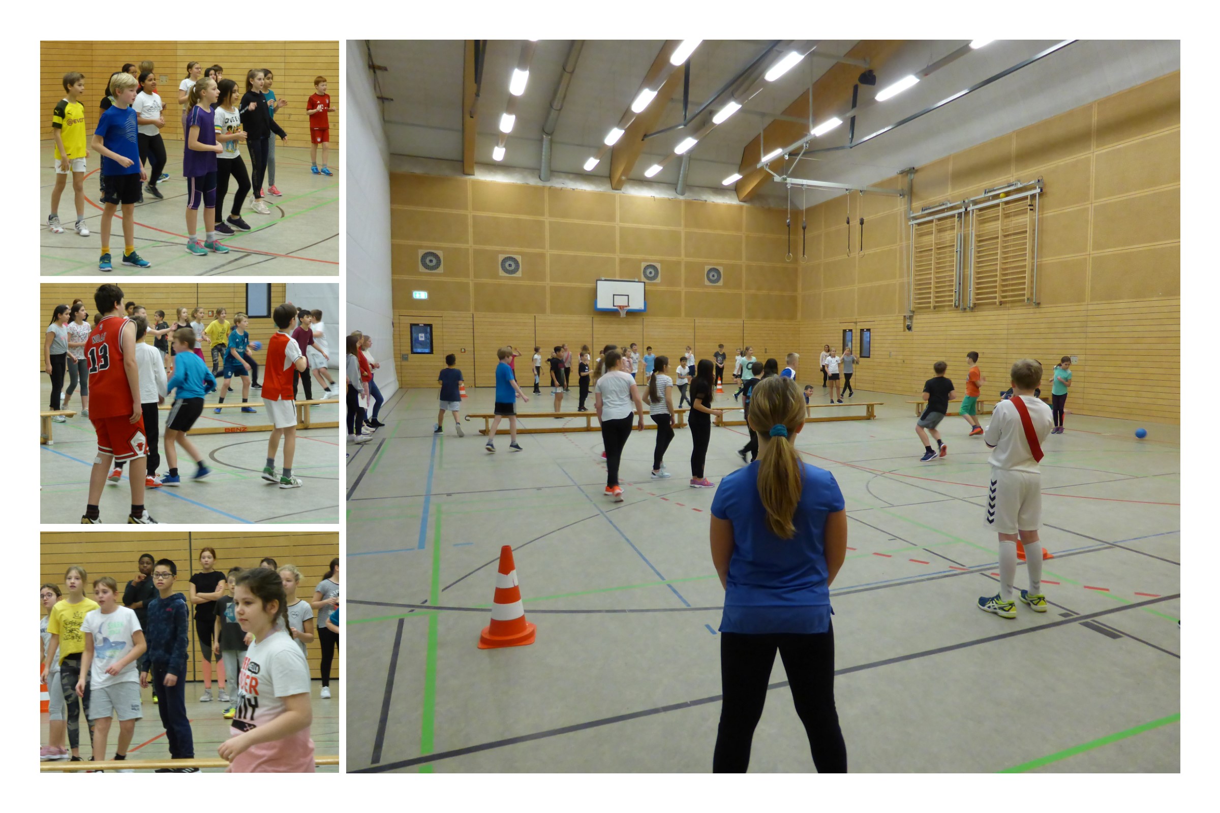 Am letzten Schultag vor den Weihnachtsferien hieß es Klassengemeinschaft gegen Klassengemeinschaft im neu aufgelegten Völkerballturnier des gesamten Jahrgangs 5. Nach 5 Runden à 8 Minuten sollte eine Klasse alle Spiele gewonnen haben. Während der Spielphasen konnte man spannende Wurf- und Fangtechniken beobachten, die teilweise über Sieg oder Niederlage entschieden. Aber auch die lautstarke Unterstützung auf und neben dem Feld half so mancher Klasse einen Punkt mehr zu erzielen. Schlussendlich kam es in Runde 5 zum Finale, in dem sich die 5b gegen die 5d behaupten konnte und als Sieger aus dem Turnier hervorging. Gratulation an die siegreiche Klasse 5b aber auch an alle weiteren Schülerinnen und Schüler des Jahrgangs 5 für dieses reibungslose und spannende Turnier.