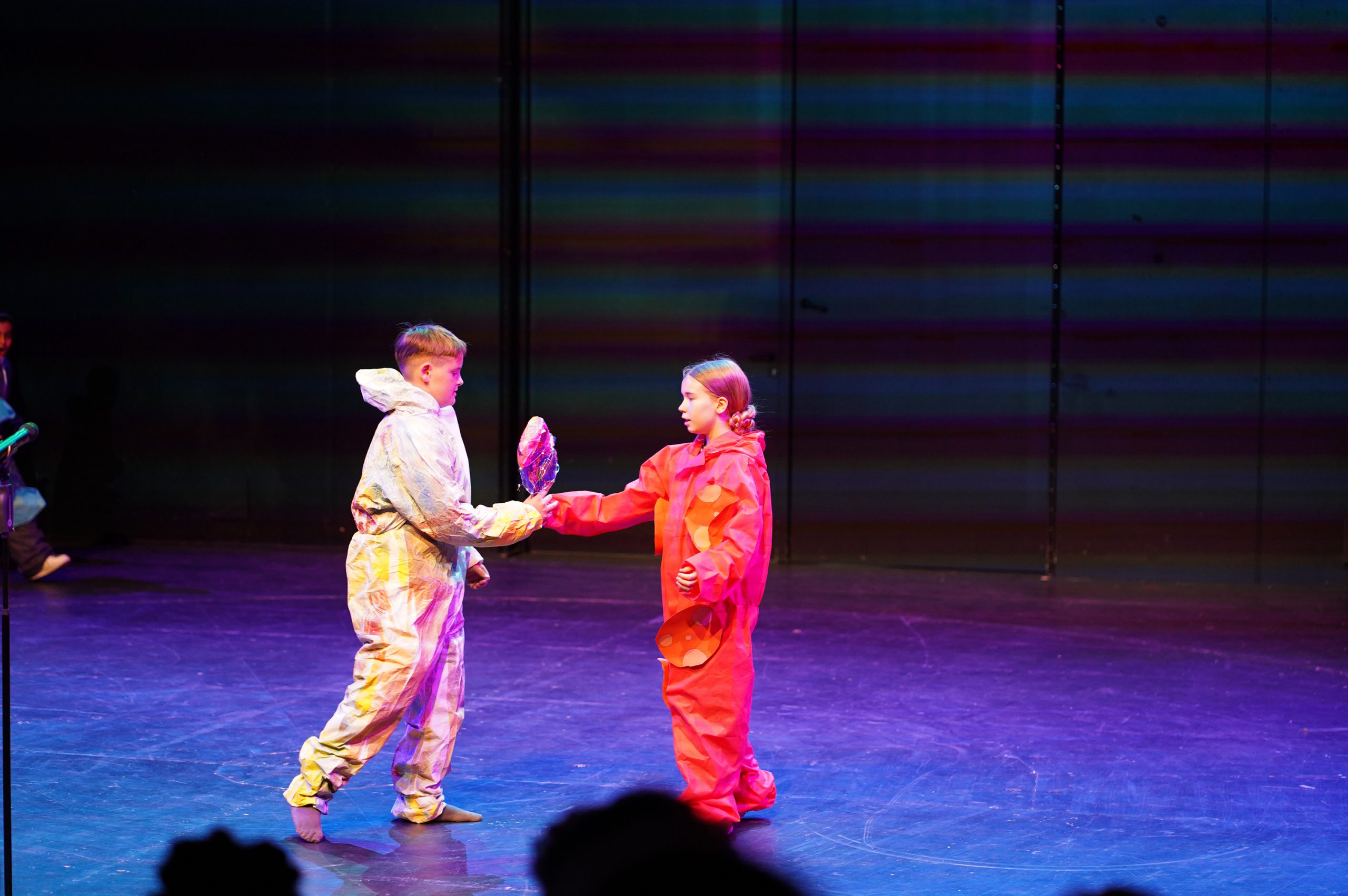 Wer bist du? Und welche Farbe gibst du dir eigentlich? Musst du dich für den verbiegen, den du lieb hast? Die jugendlichen Spieler*innen zeigten auf beeindruckende Weise, dass es wichtig ist, sich nicht für den zu verändern, den man lieb hat, sondern die für sich passende Farbe zu finden – zu schauen, was man selbst mag und wer man ist. Wow!