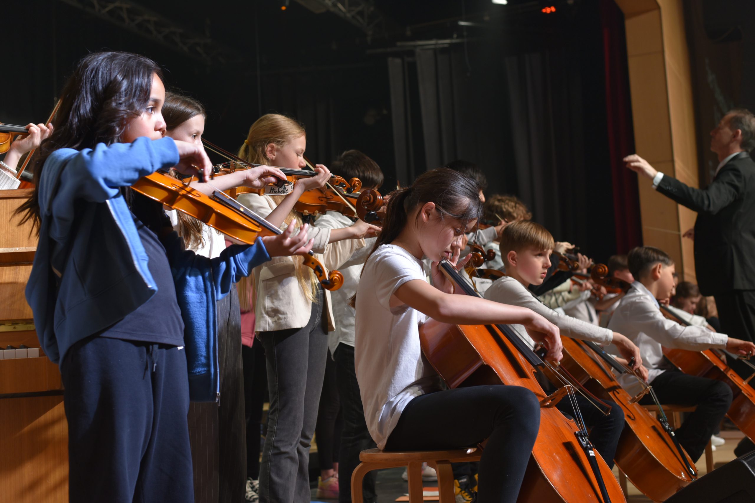 Frühlingskonzert am GyRa! Das war der Tag, an dem die Eltern ihre Kinder auf der Bühne erleben konnten, während diese ihre Instrumente und Stimmen erklingen ließen. Am Anfang waren wir sehr nervös, aber als wir erst einmal auf der Bühne standen, verschwand die Aufregung und wir hatten Spaß! Auf unseren Geigen spielten wir gemeinsam mit den Flöten und dem Ensemble: „Swing Along“, „Foggy Dew“ und „Eine kleine Nachtmusik“. Das Schönste war, dass wir auch andere Stücke von den Chören und Bands hören konnten. Besonders gut war die Tanz-AG! Es war ein fröhlicher Abend mit viel Musik!