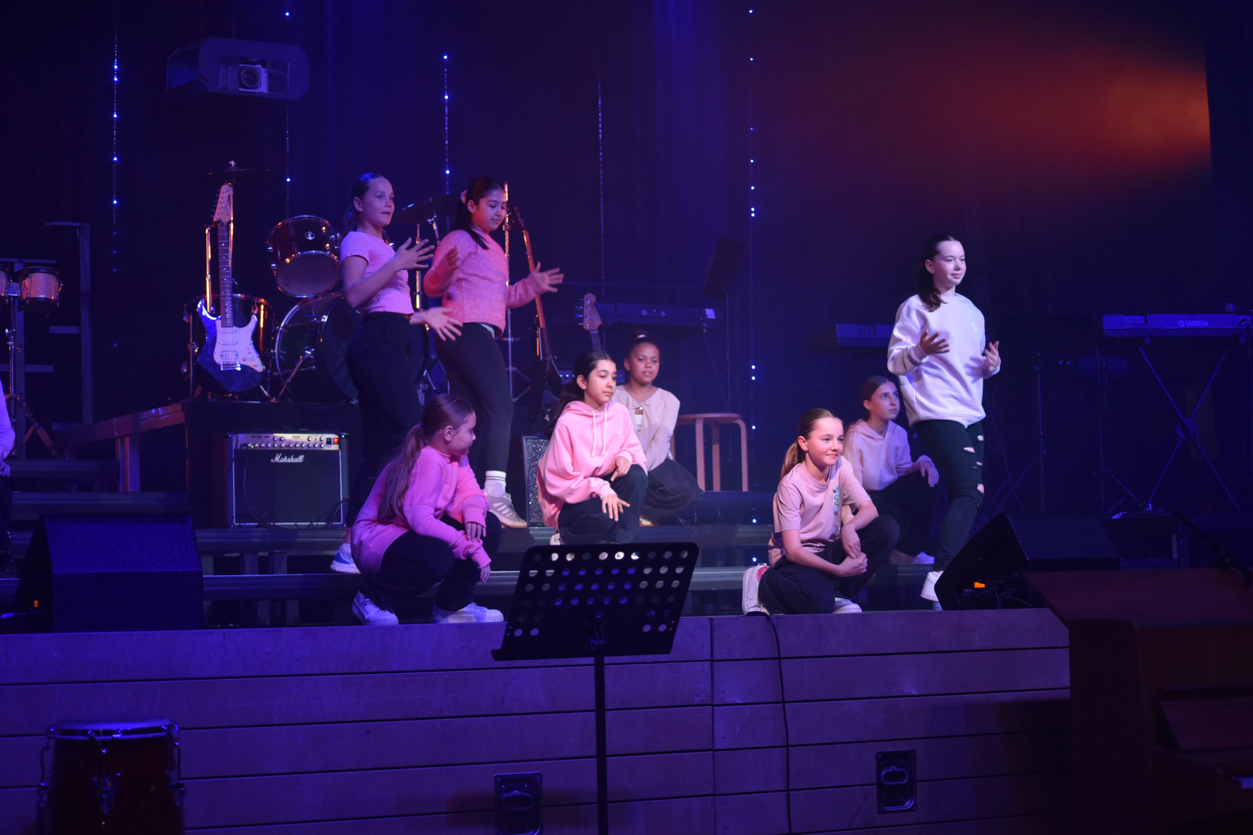Frühlingskonzert am GyRa! Das war der Tag, an dem die Eltern ihre Kinder auf der Bühne erleben konnten, während diese ihre Instrumente und Stimmen erklingen ließen. Am Anfang waren wir sehr nervös, aber als wir erst einmal auf der Bühne standen, verschwand die Aufregung und wir hatten Spaß! Auf unseren Geigen spielten wir gemeinsam mit den Flöten und dem Ensemble: „Swing Along“, „Foggy Dew“ und „Eine kleine Nachtmusik“. Das Schönste war, dass wir auch andere Stücke von den Chören und Bands hören konnten. Besonders gut war die Tanz-AG! Es war ein fröhlicher Abend mit viel Musik!