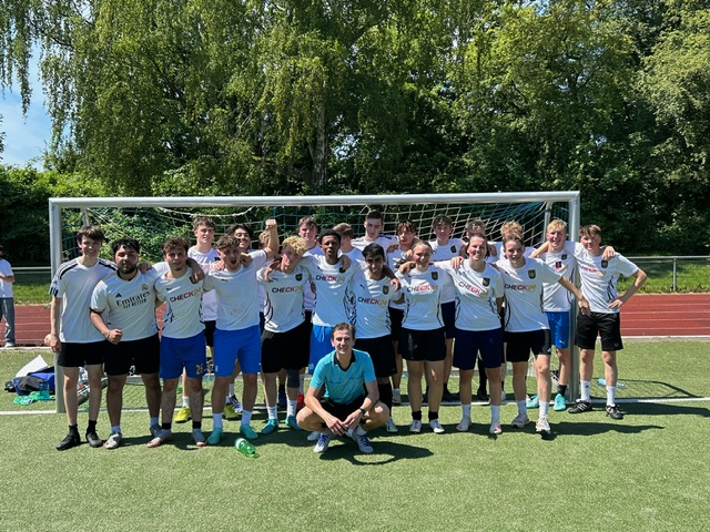 Nach inzwischen sechs sieglosen Jahren konnte die Serie gebrochen werden. Mit zwei genial platzierten Schüssen brachte ein erfahrener Mathematiker (und Fußballer) das Lehrerteam schnell in Führung! Und dieser Vorsprung wurde gegen das immer stärker aufspielende Abi24-Team bis zum Schlusspfiff unter Aufopferung aller Kräfte und Tricks erfolgreich verteidigt😉.