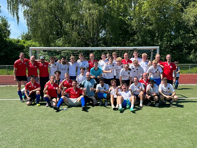 Nach inzwischen sechs sieglosen Jahren konnte die Serie gebrochen werden. Mit zwei genial platzierten Schüssen brachte ein erfahrener Mathematiker (und Fußballer) das Lehrerteam schnell in Führung! Und dieser Vorsprung wurde gegen das immer stärker aufspielende Abi24-Team bis zum Schlusspfiff unter Aufopferung aller Kräfte und Tricks erfolgreich verteidigt😉.