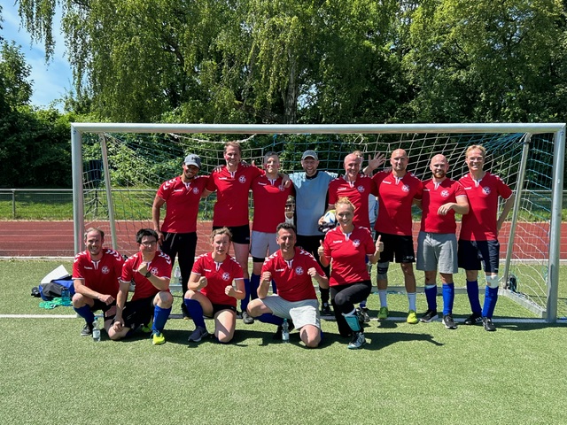 Nach inzwischen sechs sieglosen Jahren konnte die Serie gebrochen werden. Mit zwei genial platzierten Schüssen brachte ein erfahrener Mathematiker (und Fußballer) das Lehrerteam schnell in Führung! Und dieser Vorsprung wurde gegen das immer stärker aufspielende Abi24-Team bis zum Schlusspfiff unter Aufopferung aller Kräfte und Tricks erfolgreich verteidigt😉.