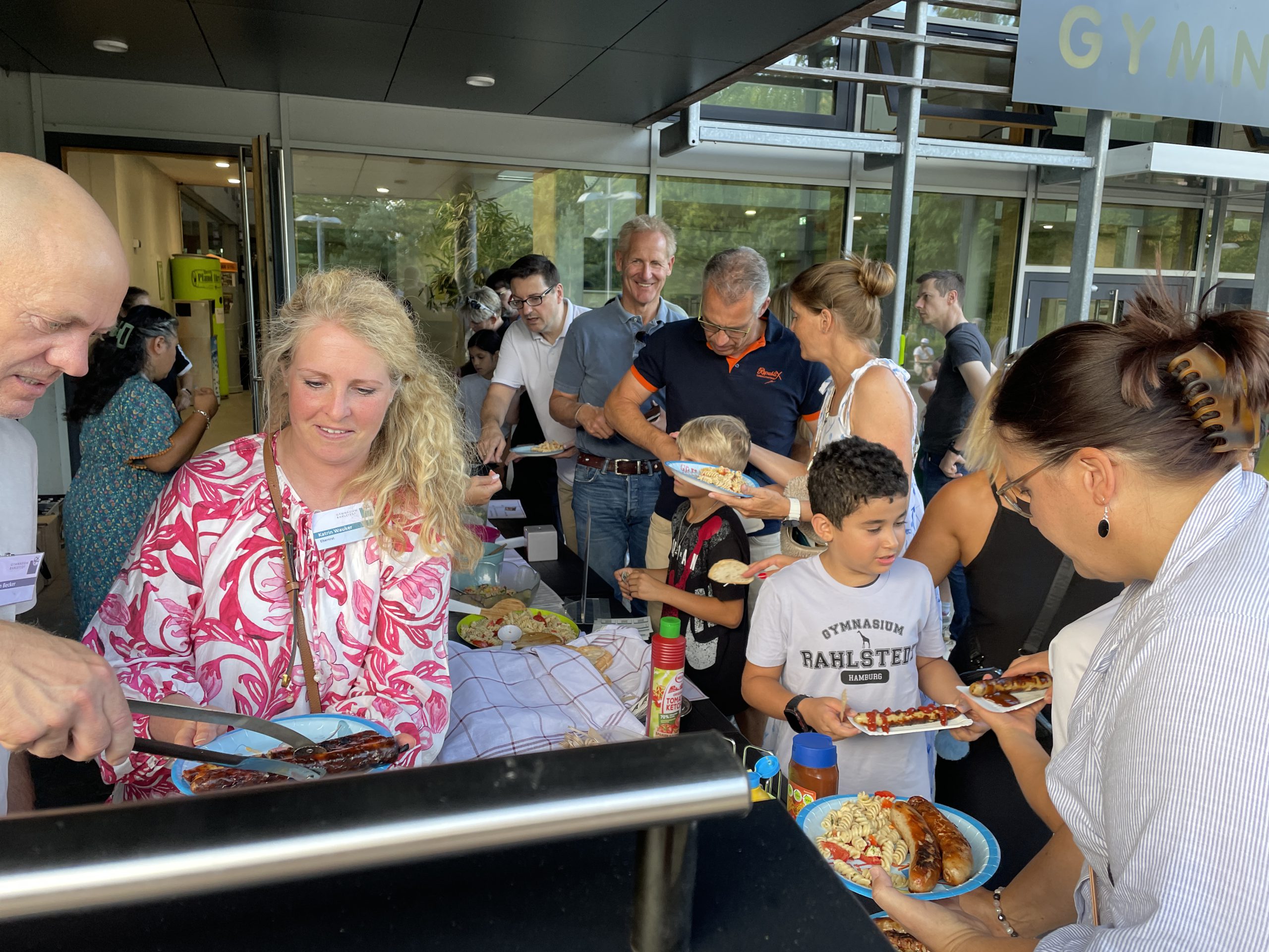 Bei herrlichem Spätsommerwetter konnten sich alle neuen Fünftklässler:innen sowie die Eltern und Geschwister über die ersten Erfahrungen am GyRa austauschen. Der Elternrat hatte wieder zum jährlichen Grill & Chill eingeladen. Herr Manke und sein Team begrüßten alle neuen Gesichter und sorgten mit viel Engagement für das leibliche Wohl. Während die Kinder gemeinsam das neue Schulgelände als Spielplatz entdeckten, plauderten die Erwachsenen mit den Lehrkräften oder den Elternratsmitgliedern. Ein netter und gelungener Ausklang für die erste Woche an der neuen Schule.