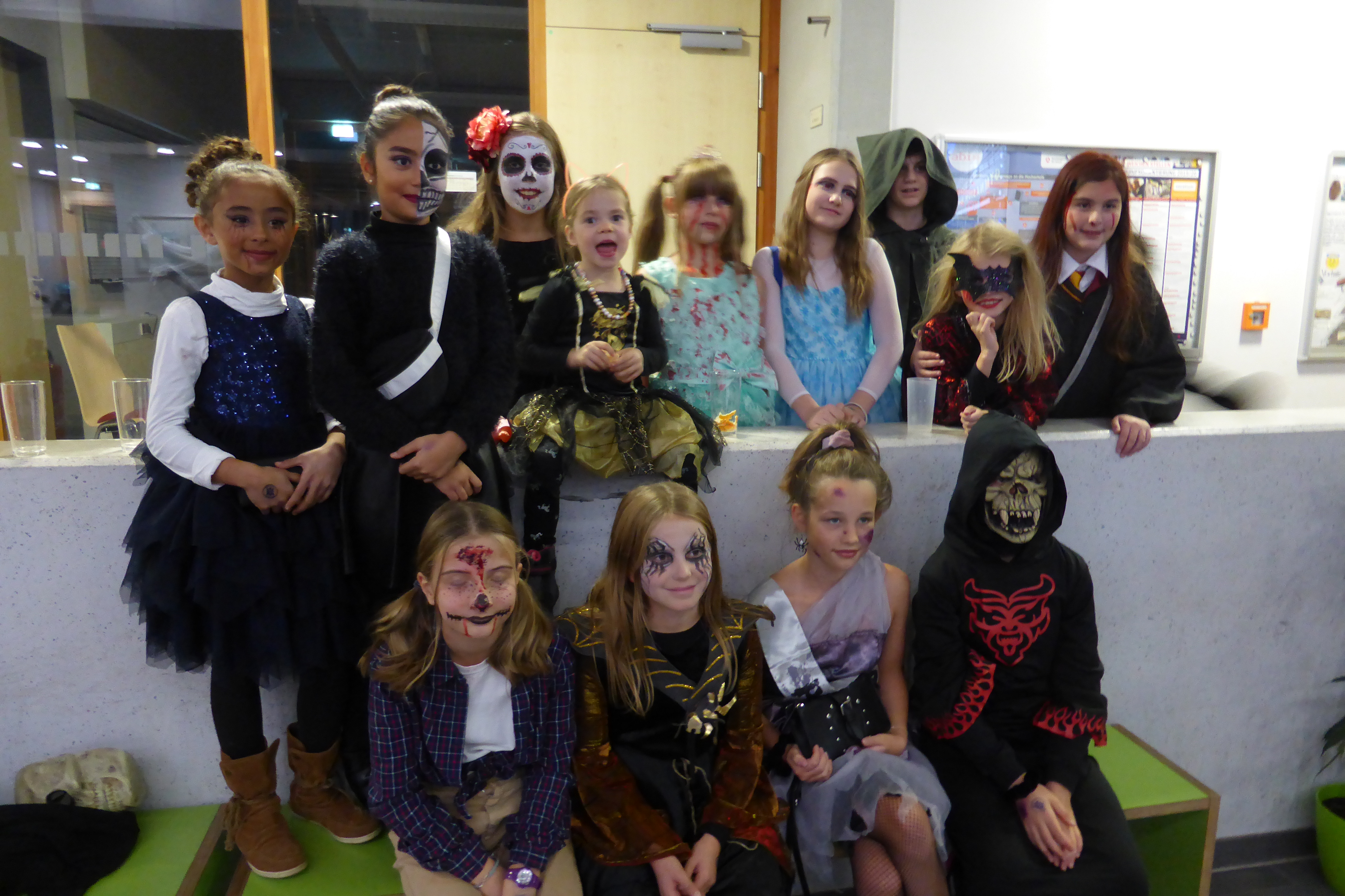 Pünktlich zu Halloween füllte sich das Atrium mit lauter schreckenerregenden Gestalten. Sie waren mit Blut überlaufen, hatten noch das ein oder andere Beil im Kopf stecken oder trugen ihre herausgenommenen Herzen und Gebisse spazieren. Nichts für schwache Nerven!