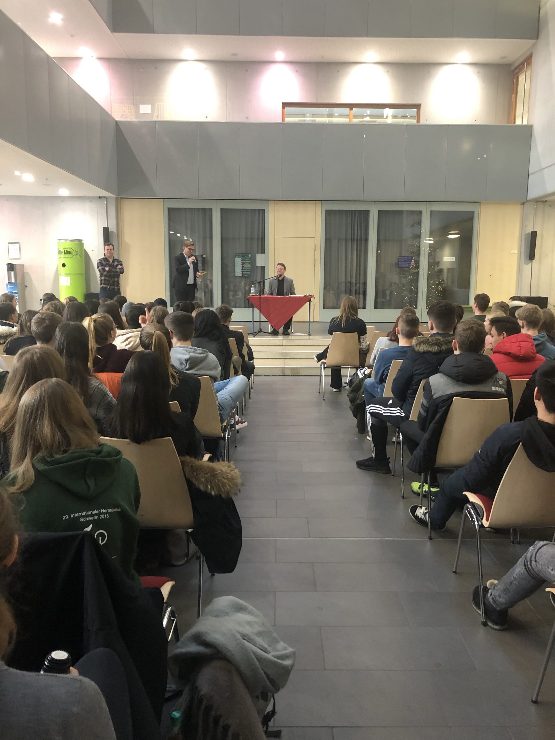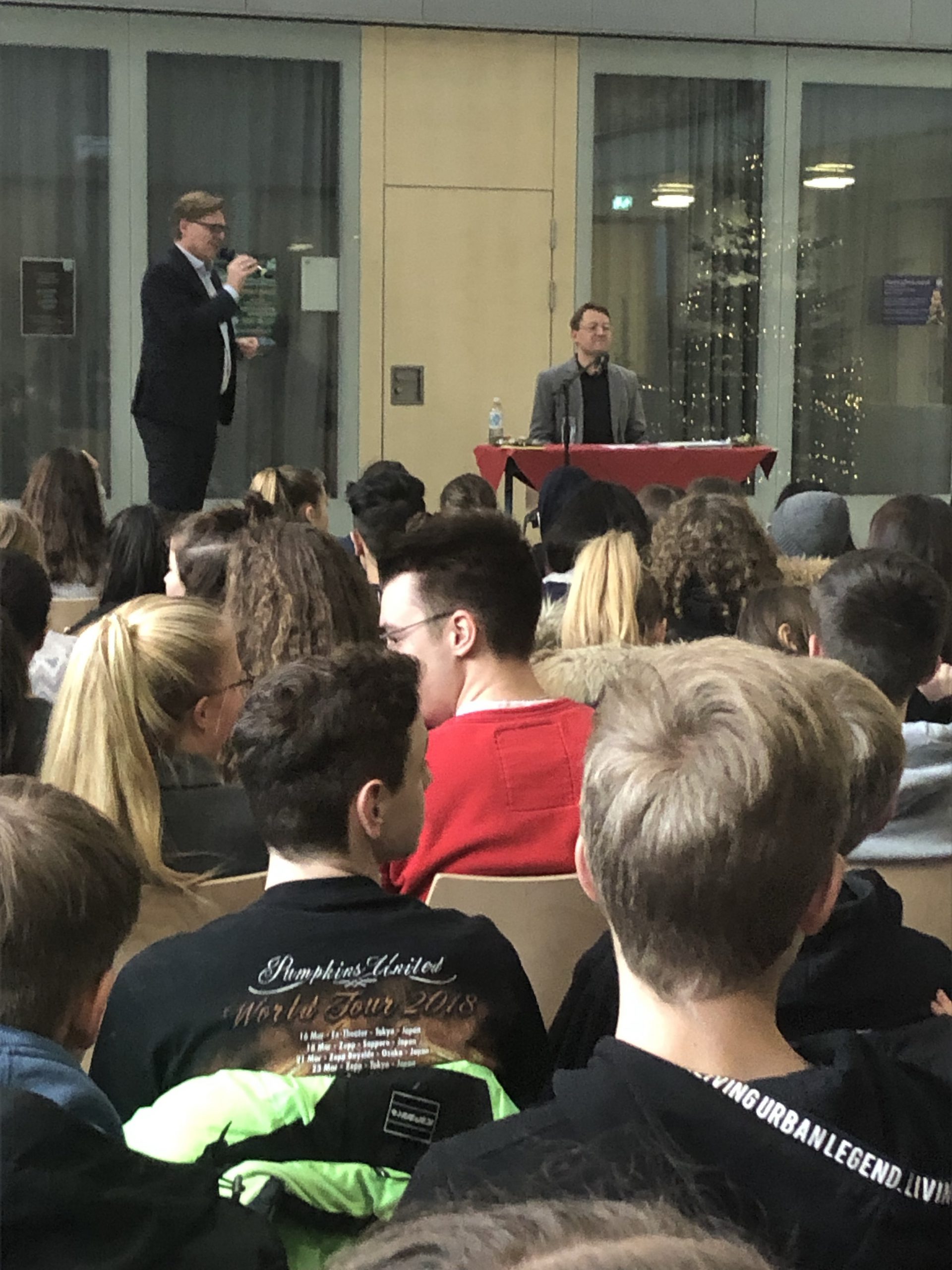 Nachdem unser Schulleiter Herr Frankenfeld einleitende Worte gesprochen und Herrn Deckert herzlich willkommen geheißen hatte, sprach der Organisator der Lesung, Herr Kubisch, noch über den Anlass derselben sowie über die Aktualität der Thematik.