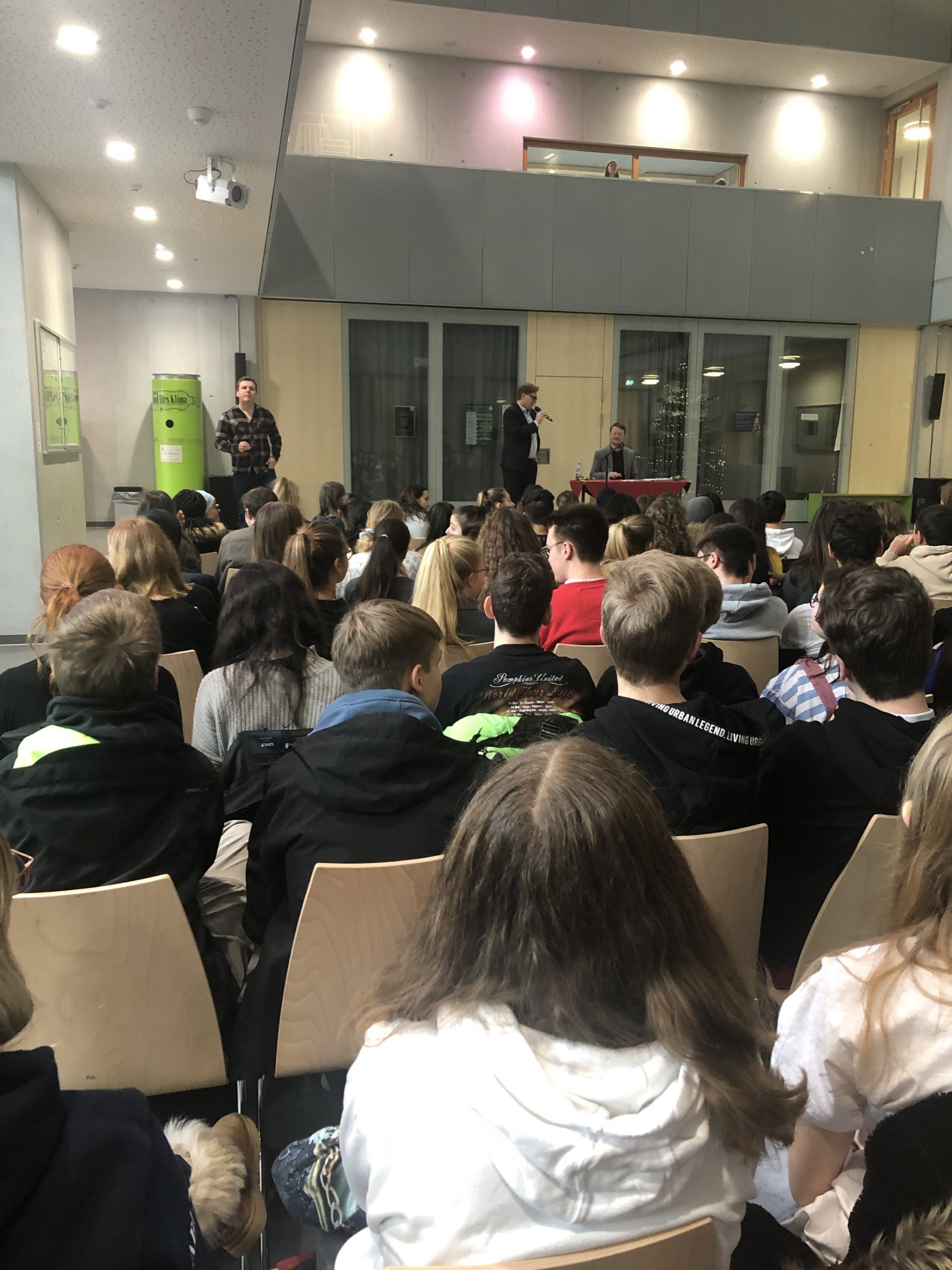 Nachdem unser Schulleiter Herr Frankenfeld einleitende Worte gesprochen und Herrn Deckert herzlich willkommen geheißen hatte, sprach der Organisator der Lesung, Herr Kubisch, noch über den Anlass derselben sowie über die Aktualität der Thematik.