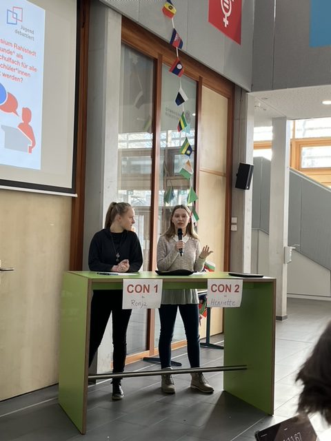 Miteinander streiten, einander zuhören und eine Meinung überzeugend vertreten – das konnten unsere Neuntklässler*innen auch in diesem Jahr wieder beeindruckend unter Beweis stellen, als es im Atrium erneut hieß: „Jugend debattiert“!