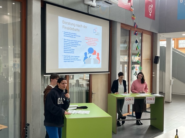 Miteinander streiten, einander zuhören und eine Meinung überzeugend vertreten – das konnten unsere Neuntklässler*innen auch in diesem Jahr wieder beeindruckend unter Beweis stellen, als es im Atrium erneut hieß: „Jugend debattiert“!