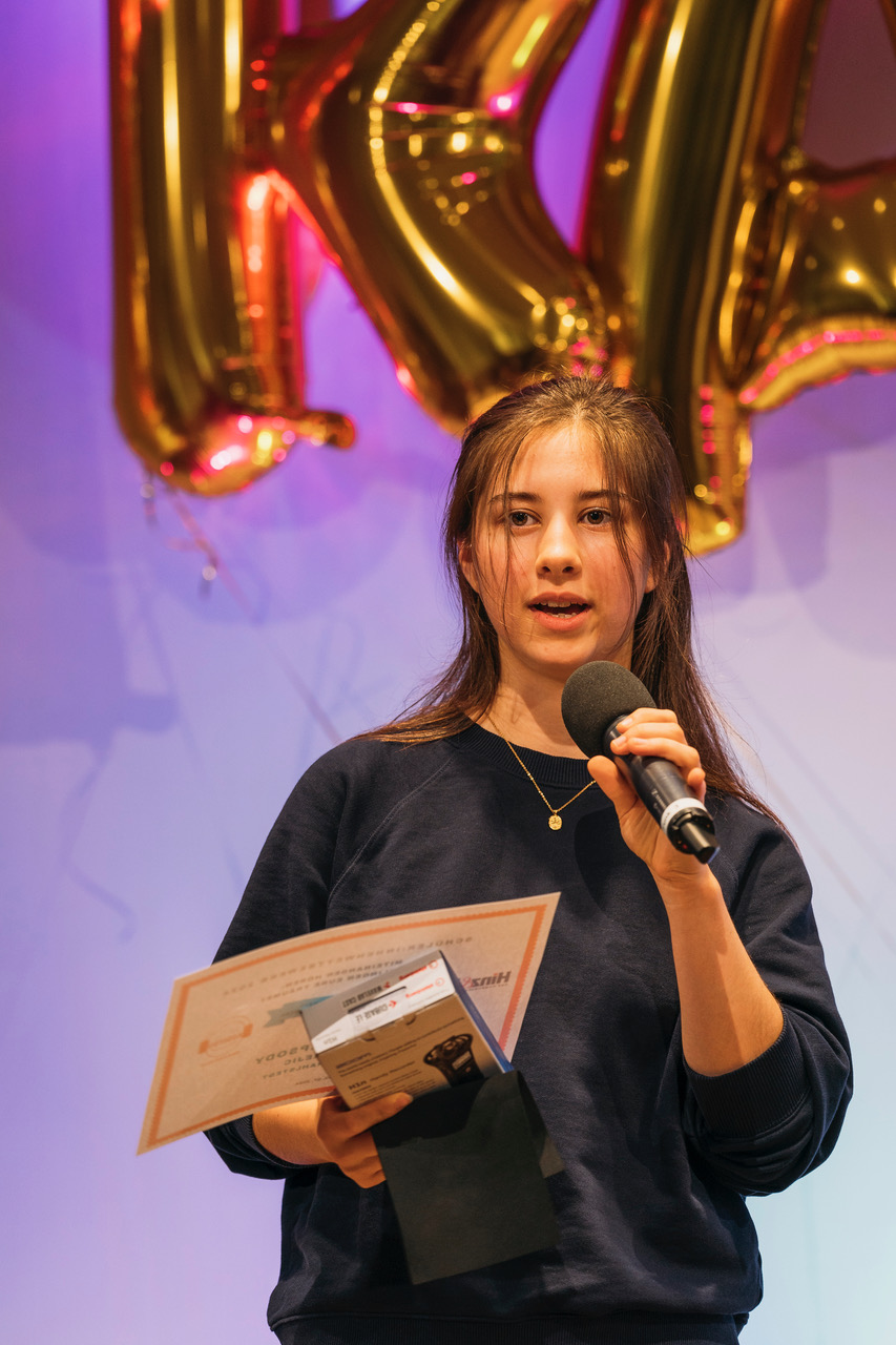 Bei der Preisverleihung am 2. Juli 2024, die im großen Veranstaltungssaal der Zentralbibliothek am Hühnerposten stattfand, spielte Iva Andrejic (9b) ihre eigene Komposition noch einmal live und verzauberte das Publikum mit allen Registern ihres Könnens. Basierend auf einer gleichbleibenden Tonfolge im Bass, entfaltet sich die Dream Rhapsody in schnelleren und nachdenklicheren Abschnitten, wie Iva selbst beschreibt: