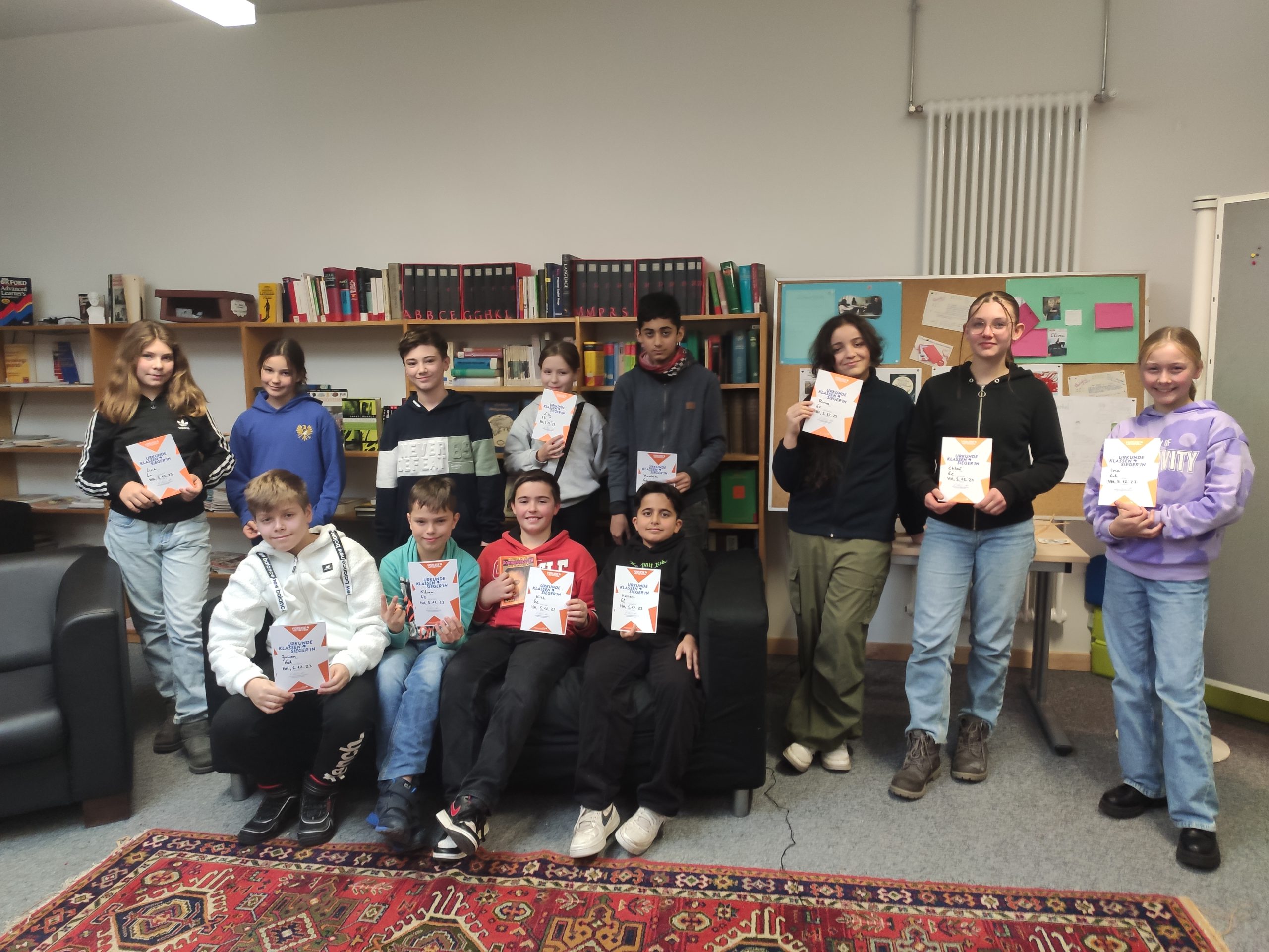 Wie jedes Jahr im Dezember fand an unserer Schule der « Vorlesewettbewerb » statt. Zunächst wurde im Deutschunterricht aller sechsten Klassen der Klassensieger und die Klassensiegerin gefunden und diese traten dann am 5.12 zum Schulentscheid an. In der weihnachtlich geschmückten Bücherei wartete die Jury bereits gespannt auf die Kandidatinnen und Kandidaten: