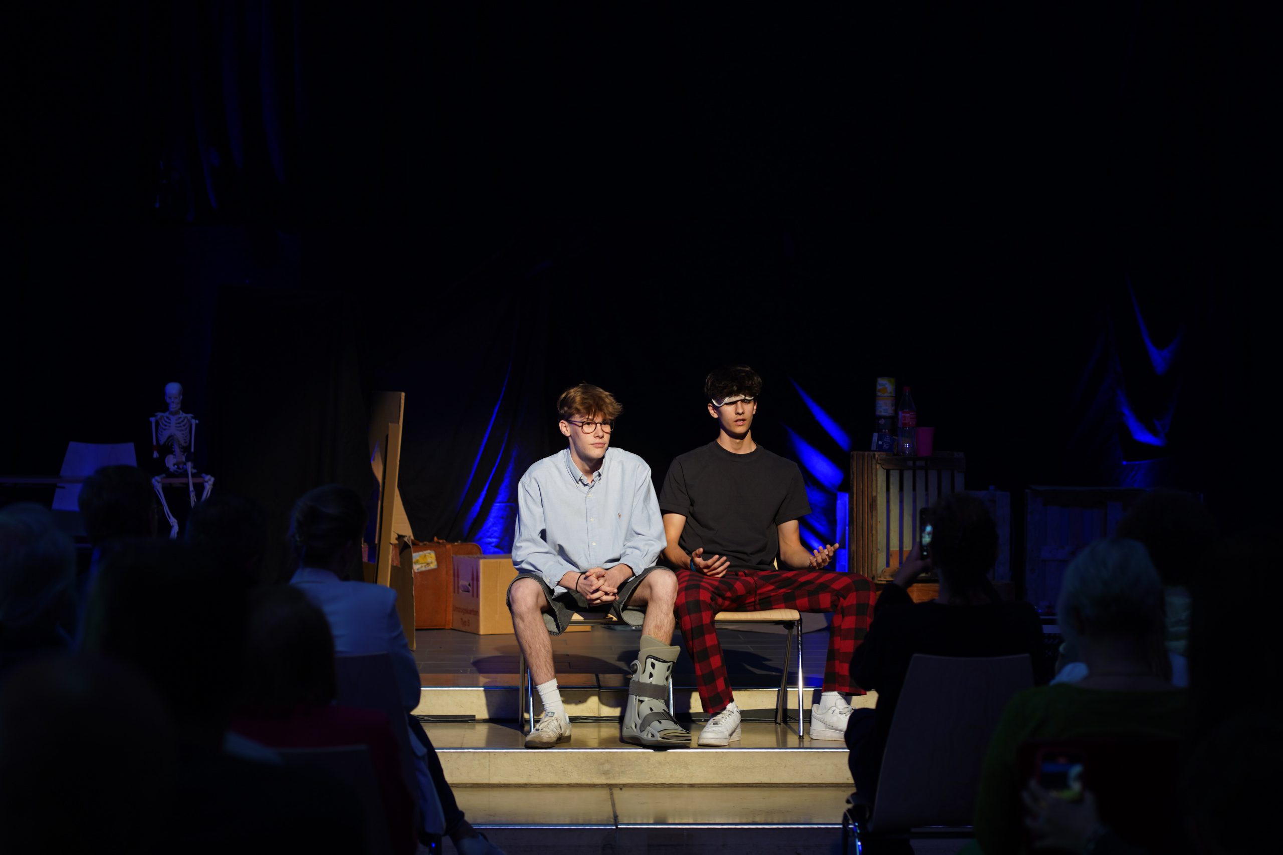 Doch was braucht es dazu? Dieser Frage stellen sich die Jugendlichen, die dabei von einer Gruppe von Wissenschaftlern beobachtet werden, die wiederum unter der Kontrolle der Initiatoren des Experiments stehen, die sich selbst allerdings den kritischen Fragen und Kommentaren zweier Beobachter stellen müssen. Der Rahmen ist also gesetzt und diesen wissen die Darsteller hervorragend für sich zu nutzen: So überzeugen beispielsweise die beiden Hauptdarstellerinnen Hilda und Carlotta in einem wortreichen Duell, während Iwo und Filip als besorgte Eltern mit ihrer charmanten Spielweise das Publikum für sich einzunehmen wissen. Es sind immer wieder vor allem auch die leisen Momente, die besonders lange nachwirken, wenn sich zum Beispiel Frau Dr. Dr. (gespielt von Ronja) auf eine sehr eindringliche Art plötzlich dazu aufschwingt, die Jugendlichen im Namen der Moral führen zu wollen. Allen Darsteller:innen gelingt es, ihren Figuren Leben einzuhauchen, indem sie um Macht rangeln, Gemeinheiten austauschen, um Essen streiten und sich vielleicht auch ein kleines bisschen lieben. Der Respekt gebührt ihnen allen und natürlich auch ihrem Lehrer Herrn Krösser, der das hochaktuelle Stück gemeinsam mit den Schüler:innen erarbeitet hat.