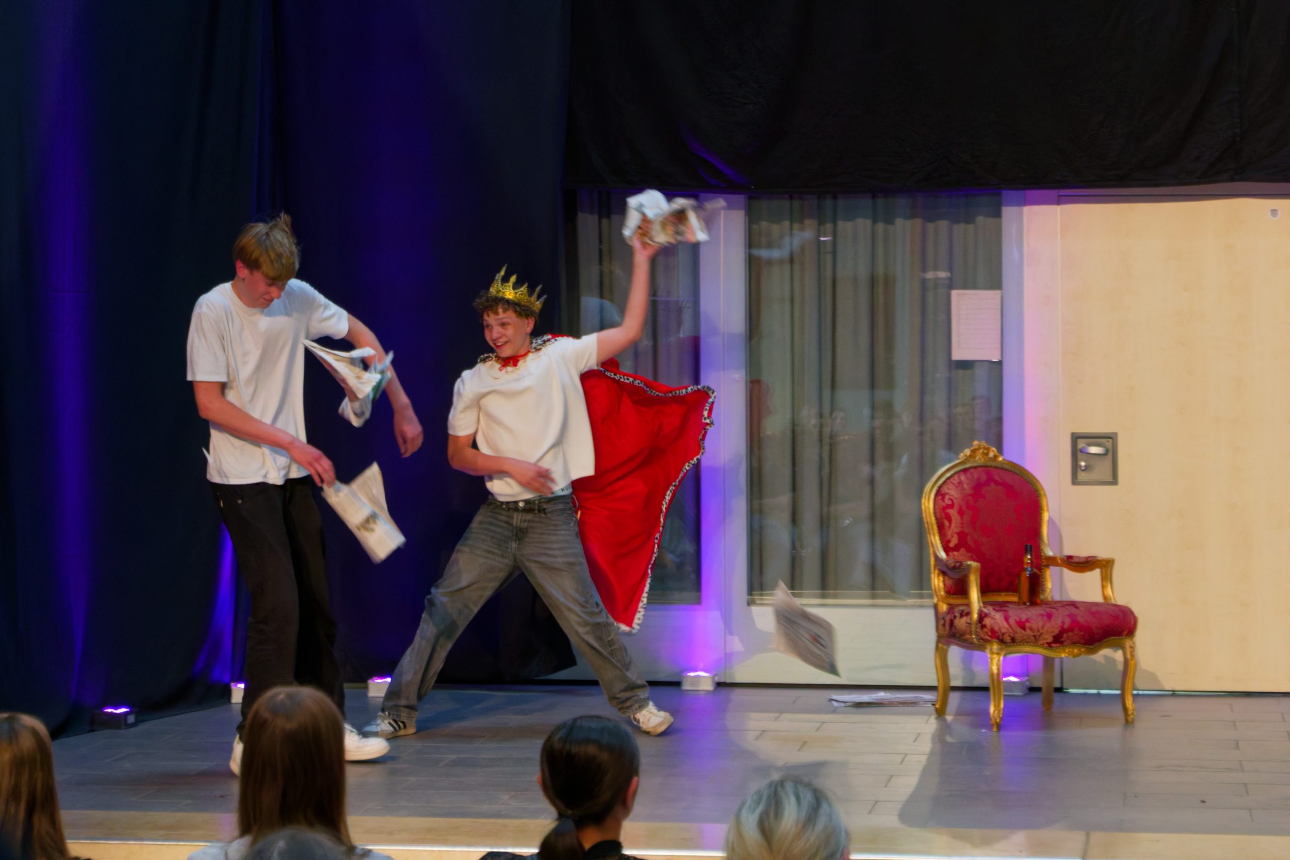 Der Theaterkurs hat sich den Sturm- und Drang Text von Schiller zur Hilfe genommen, um Fragen in den Vordergrund zu stellen: Wie schnell kann man vom Träumer zum Täter werden? Wie leicht kippen Werte, wenn man sich ungesehen, ungerecht behandelt fühlt? Wo endet Moral und wo beginnt das Verbrechen?
