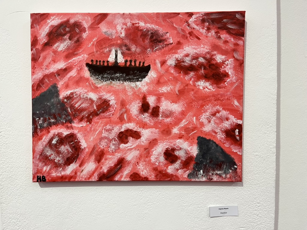 Die Ausstellung zeigte eine beeindruckende Bandbreite an Medien und Ausdrucksformen: Malerei und Grafik waren genauso zu finden, wie Videos, Soundinstallationen und Skulpturen. Thematisch kreisten die Arbeiten um Fluchterfahrungen, familiäre Erinnerungen, Wasser als Grenze und Lebensraum, Bewegung über Land und Meer – immer mit dem Ziel, durch künstlerisches Arbeiten neue Erkenntnisse zu gewinnen.