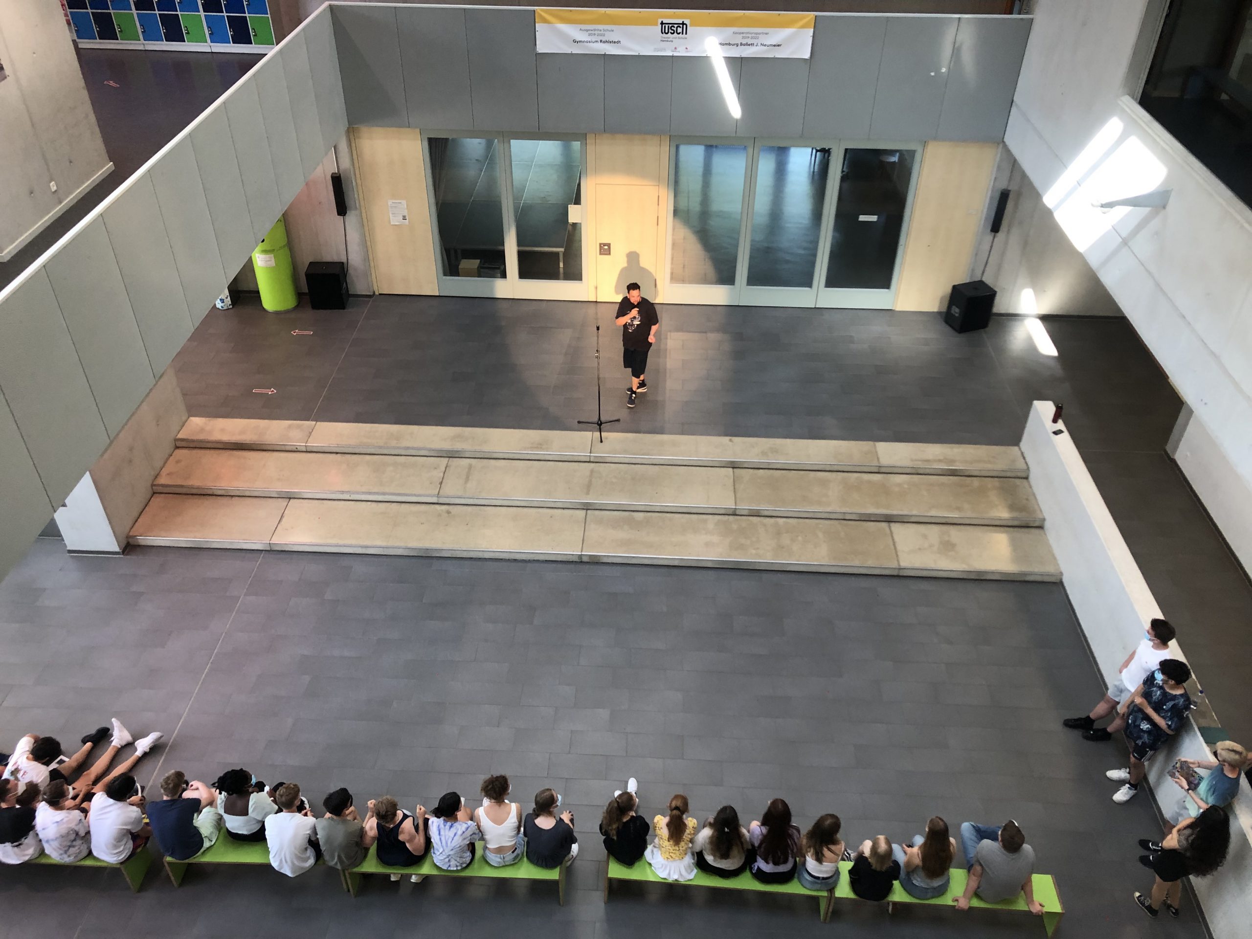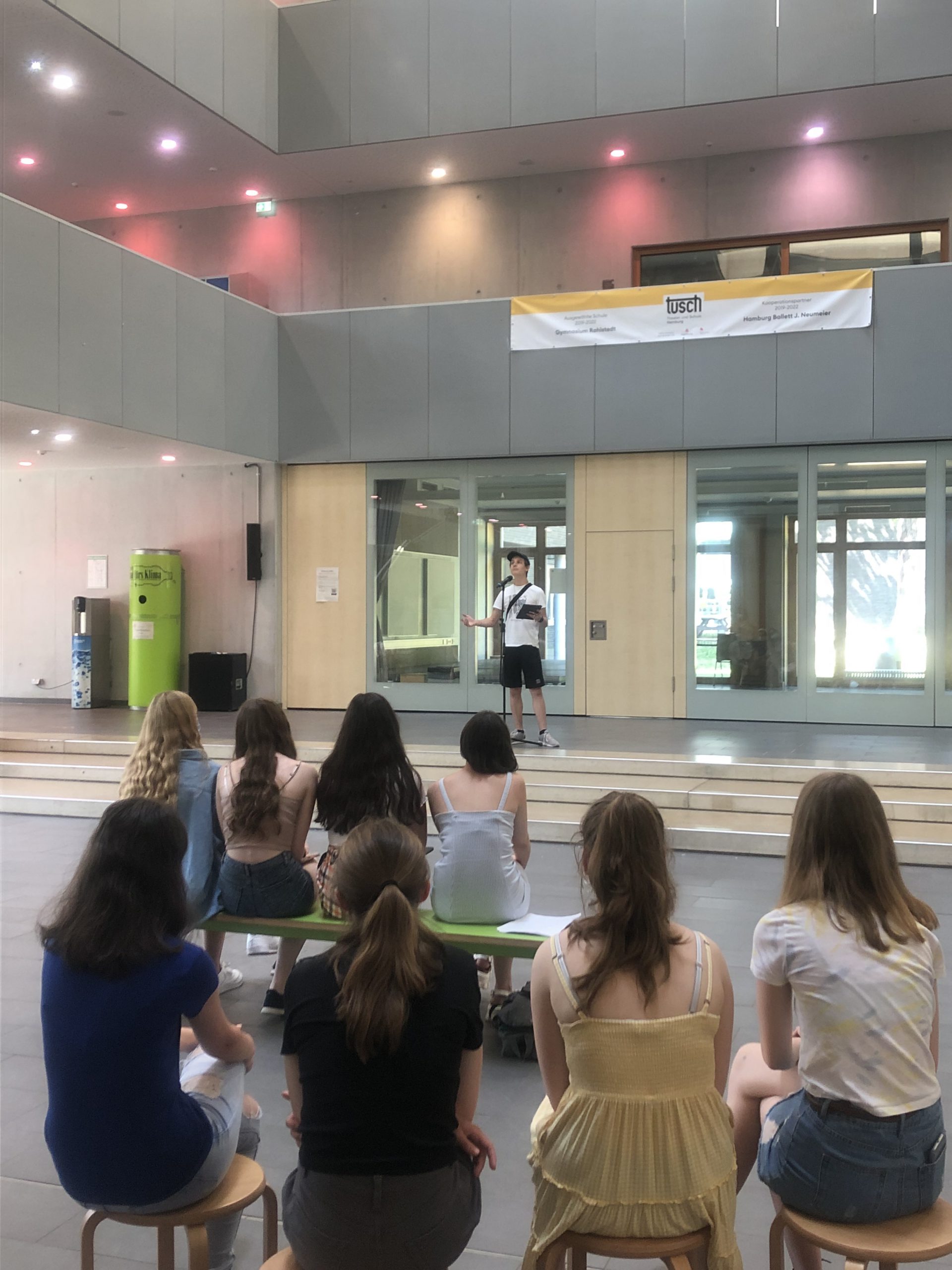 Hier einige Impressionen von unserer Workshoparbeit und dem Abschluss-Slam am vergangenen Freitag, bei dem fast zwanzig Schüler*innen den Gang auf die Bühne wagten.