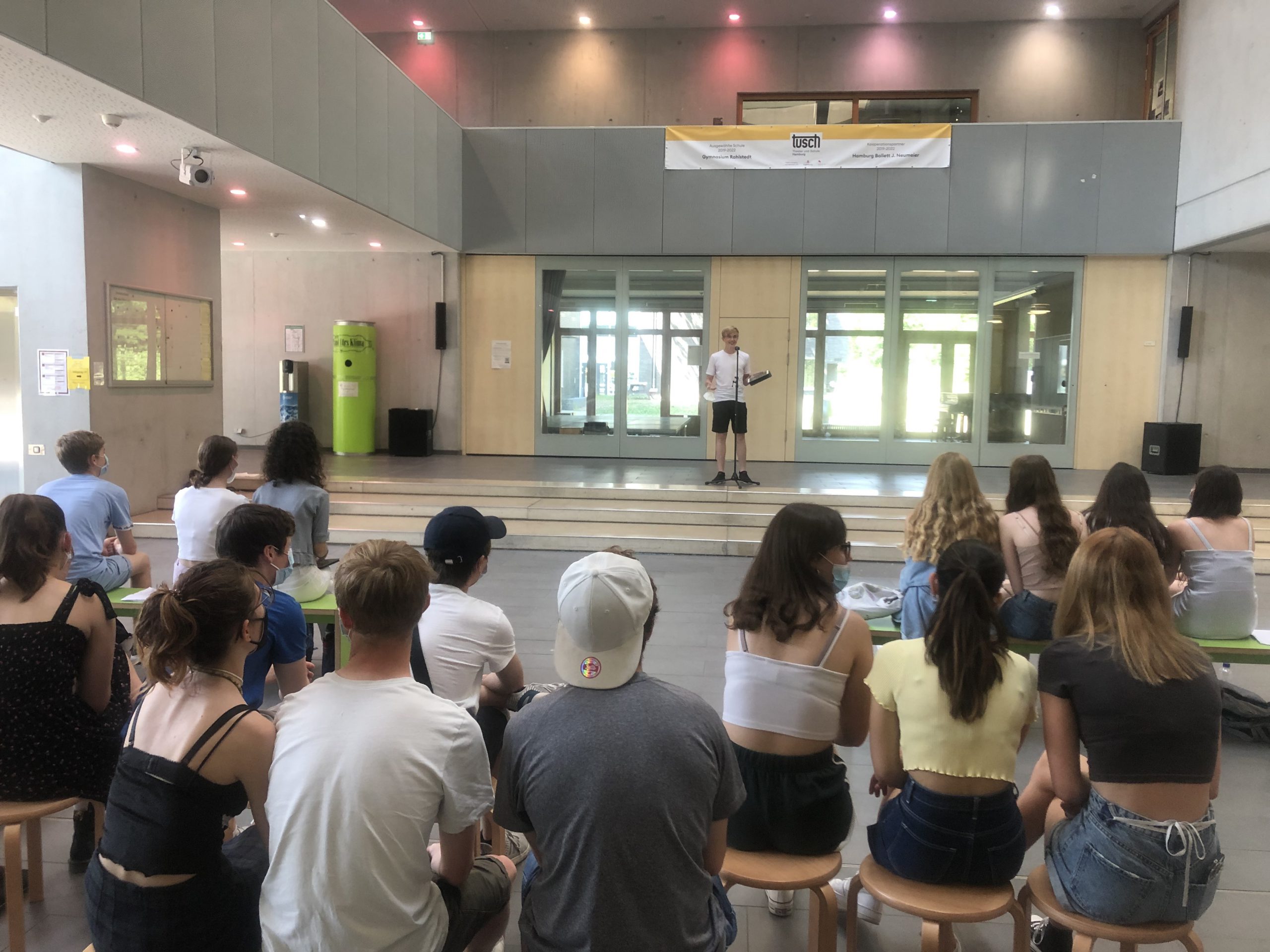 Hier einige Impressionen von unserer Workshoparbeit und dem Abschluss-Slam am vergangenen Freitag, bei dem fast zwanzig Schüler*innen den Gang auf die Bühne wagten.