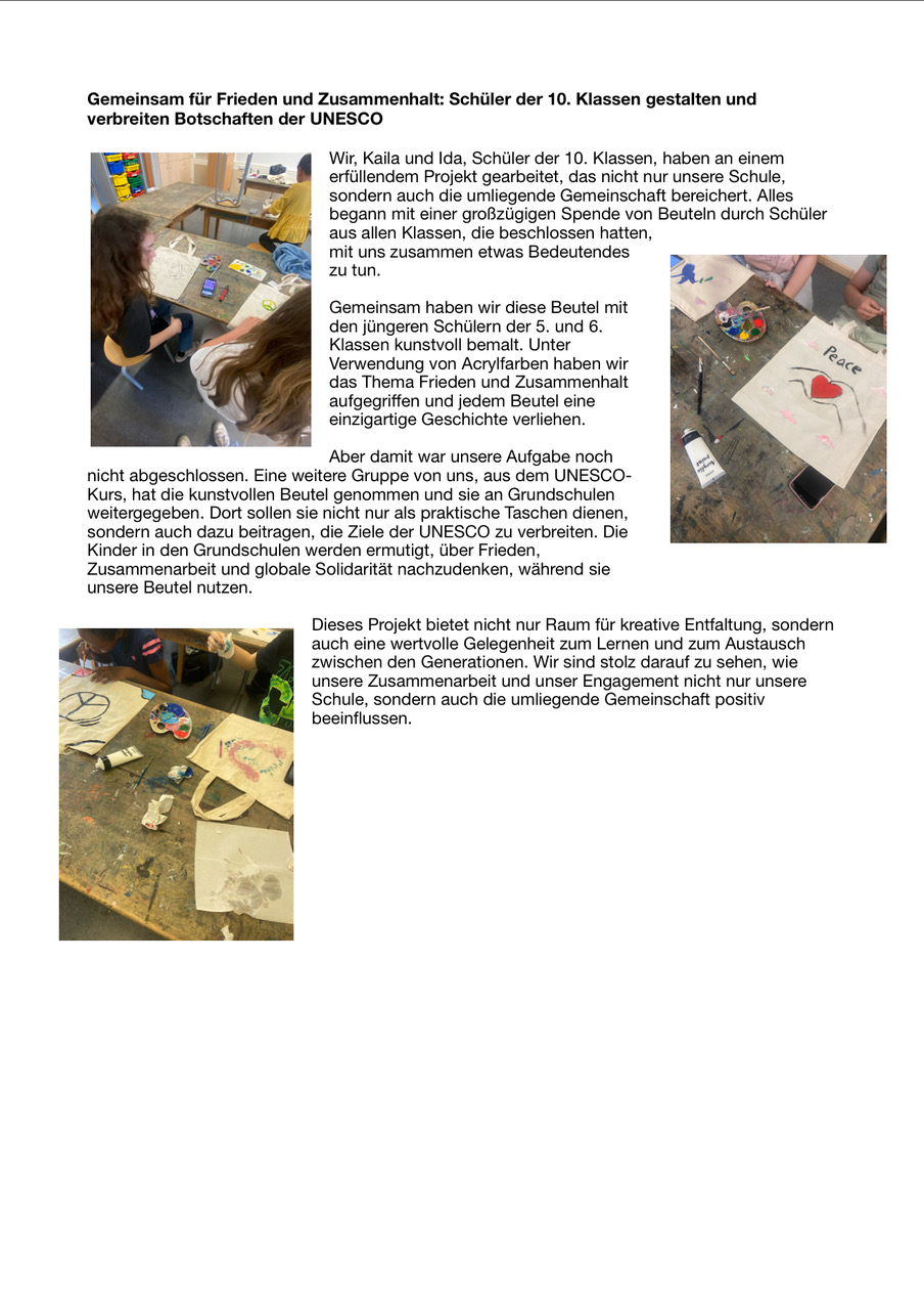 Projektberichte aus dem UNESCO-Wahlkurs in Klasse 10