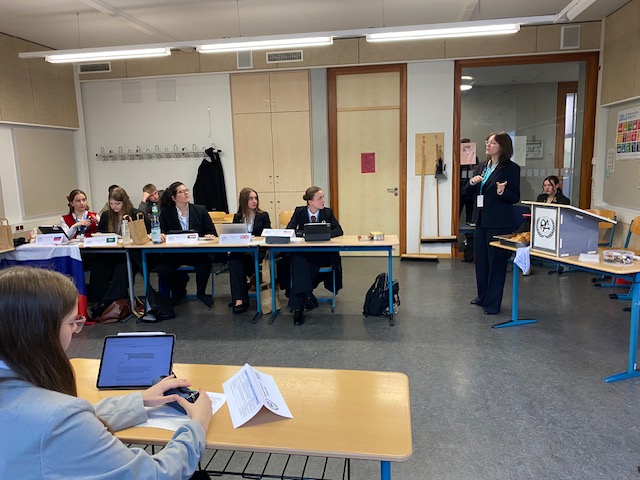 Die beiden Komitees beschäftigten sich mit aktuellen Themen: Children’s Rights in Gaza and Israel sowie Women’s Rights in Iran. Ein besonderer Programmpunkt war die Live-Schalte zu Stéphanie Toschi, Counsellor of Human Rights der luxemburgischen UN-Vertretung in New York. Sie berichtete davon, wie wichtig es gerade in schwierigen globalen Zeiten ist, sich für Politik und Diplomatie zu interessieren – sowohl für Fachleute als auch für junge Menschen.