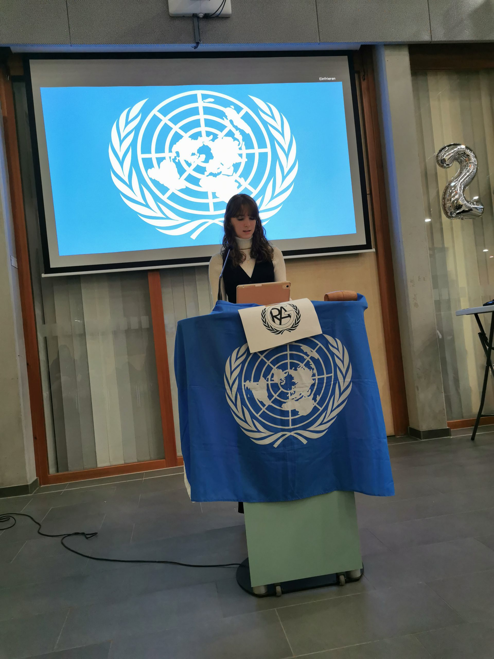 At this year’s conference, which took place on 3 February at GyRa, we not only entertained the ambassador speeches of the represented P5-nations, but also a speech by our headmaster Mr. Frankenfeld. We also had the honor to entertain a guest speech from a UN Ambassador of Peace.
