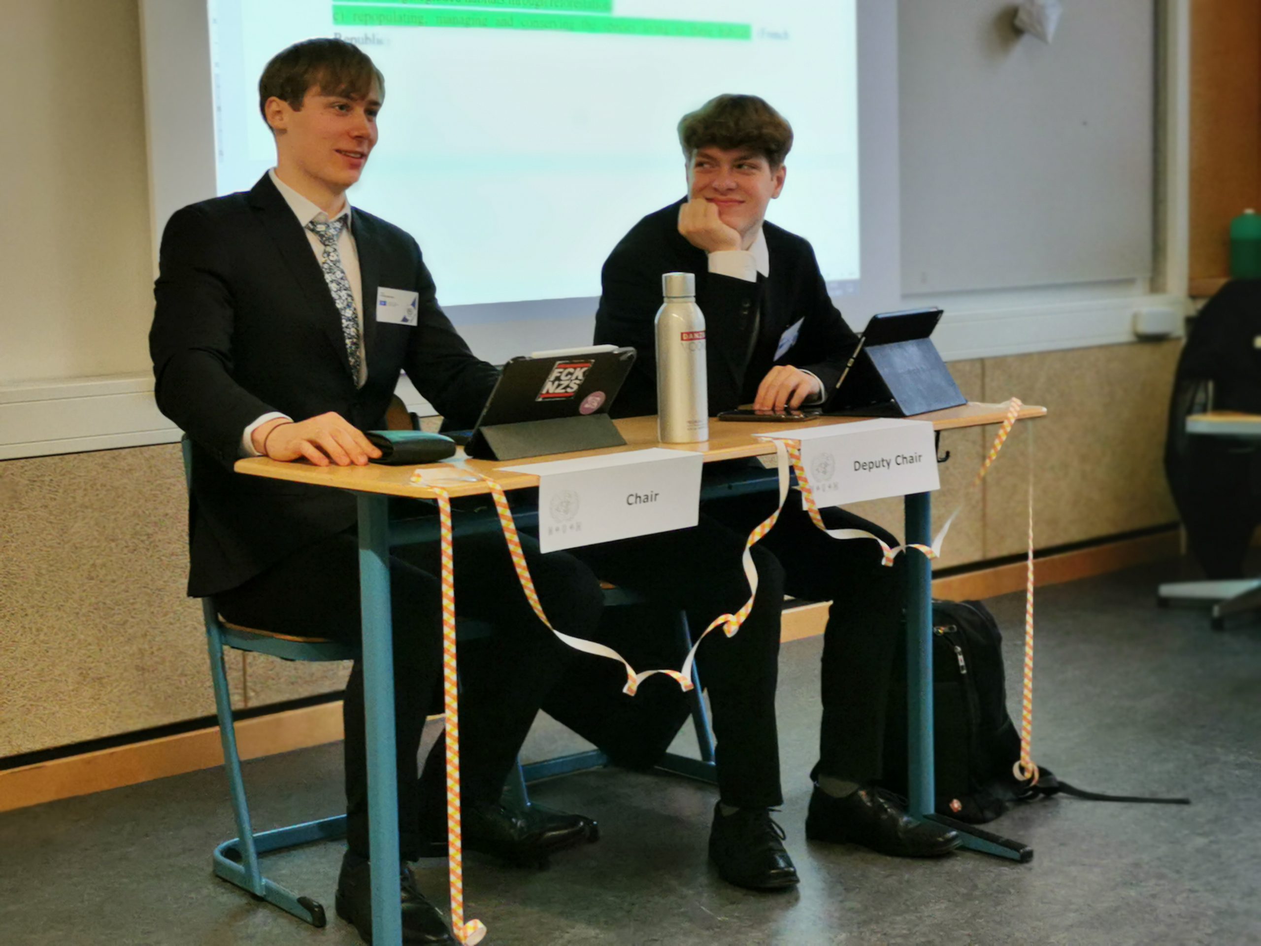 Some students had the special responsibility in the entire organization process. The so-called executive team of seven Inter-students with the support of Mrs. Luteijn, was in charge of the planning of this event, which included getting the rooms ready, setting the schedule and inviting guests like our former MUN director Mr. Pätzhorn.